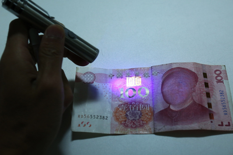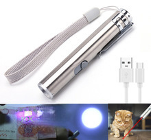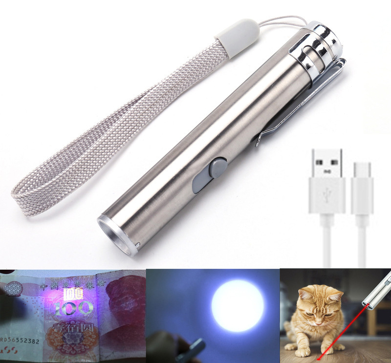 De acero inoxidable de múltiples funciones LED mini linterna detector de efectivo de luz láser infrarrojo tres en uno USB recargable