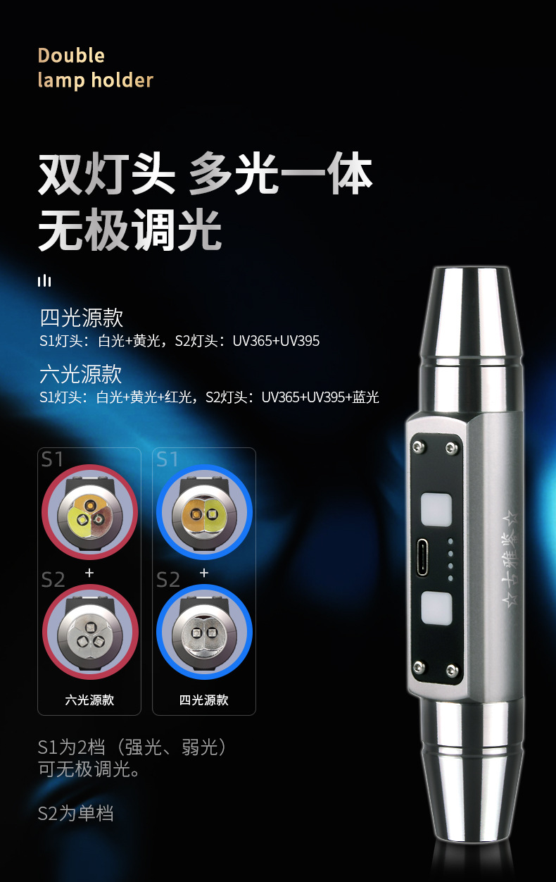 Nueva linterna Jade de doble cabeza 4 luz/6 luz USB Identificación de carga directa joyería Jade reloj de cera de abejas agente fluorescente lámpara