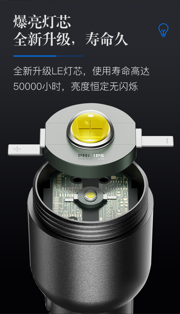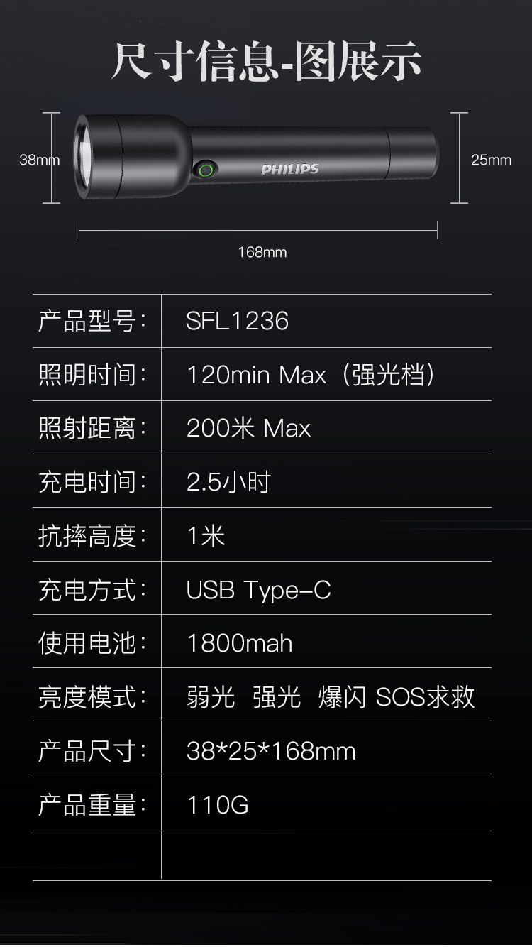 Philips SFL1236 linterna fuerte luz tipo-C recargable multifuncional hogar iluminación portátil