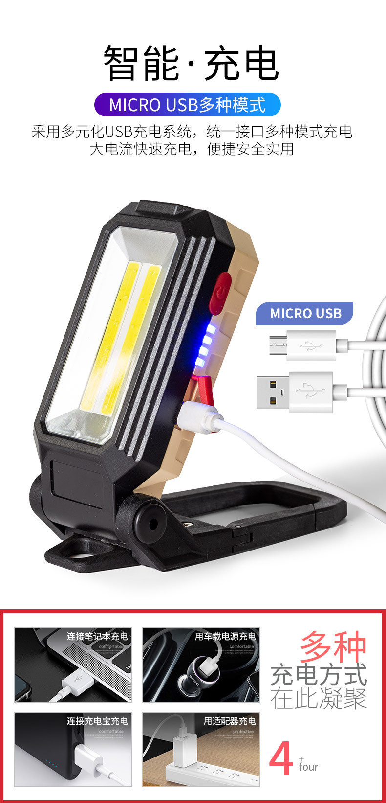 Luz de reparación de carga USB con imán multifuncional COB linterna de luz fuerte Luz LED de reparación de trabajo transfronterizo nuevo