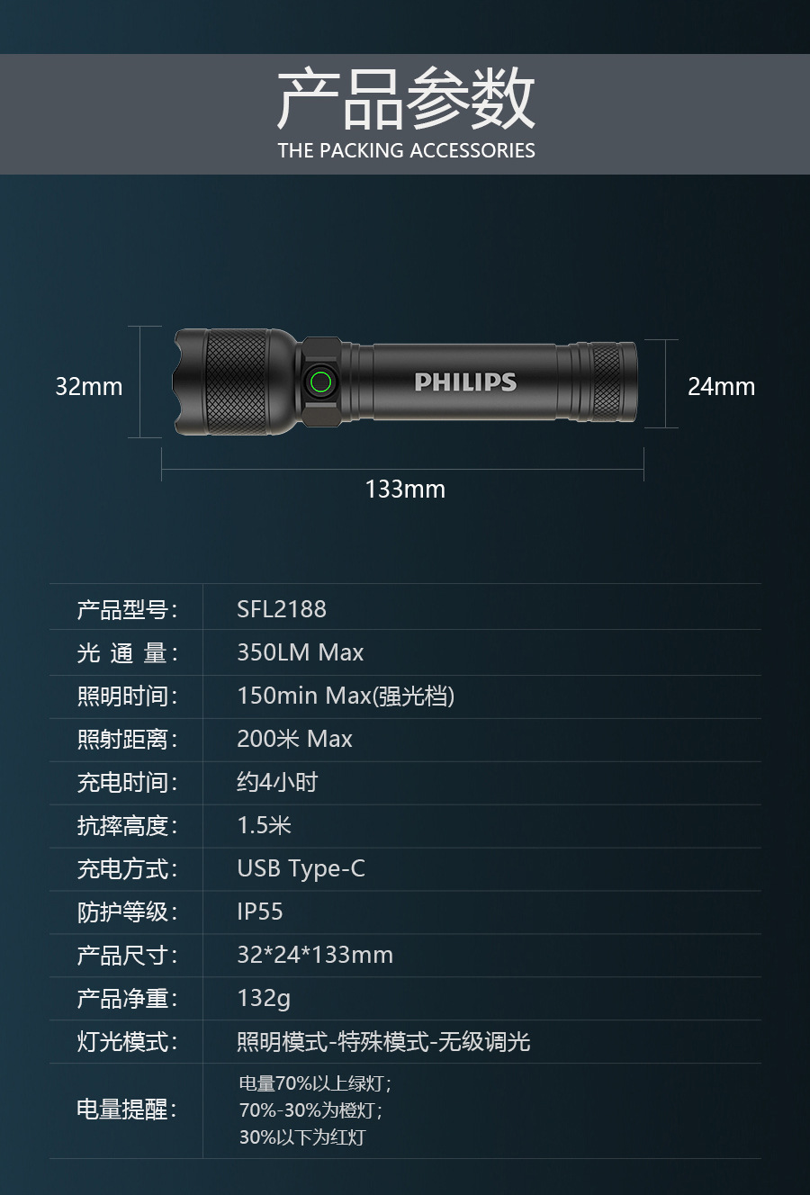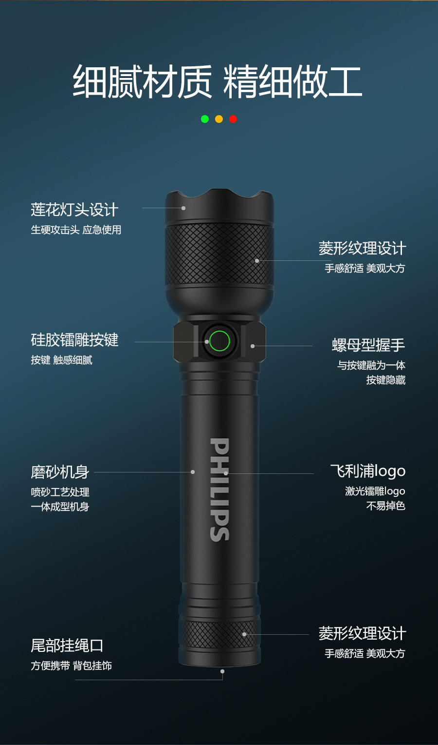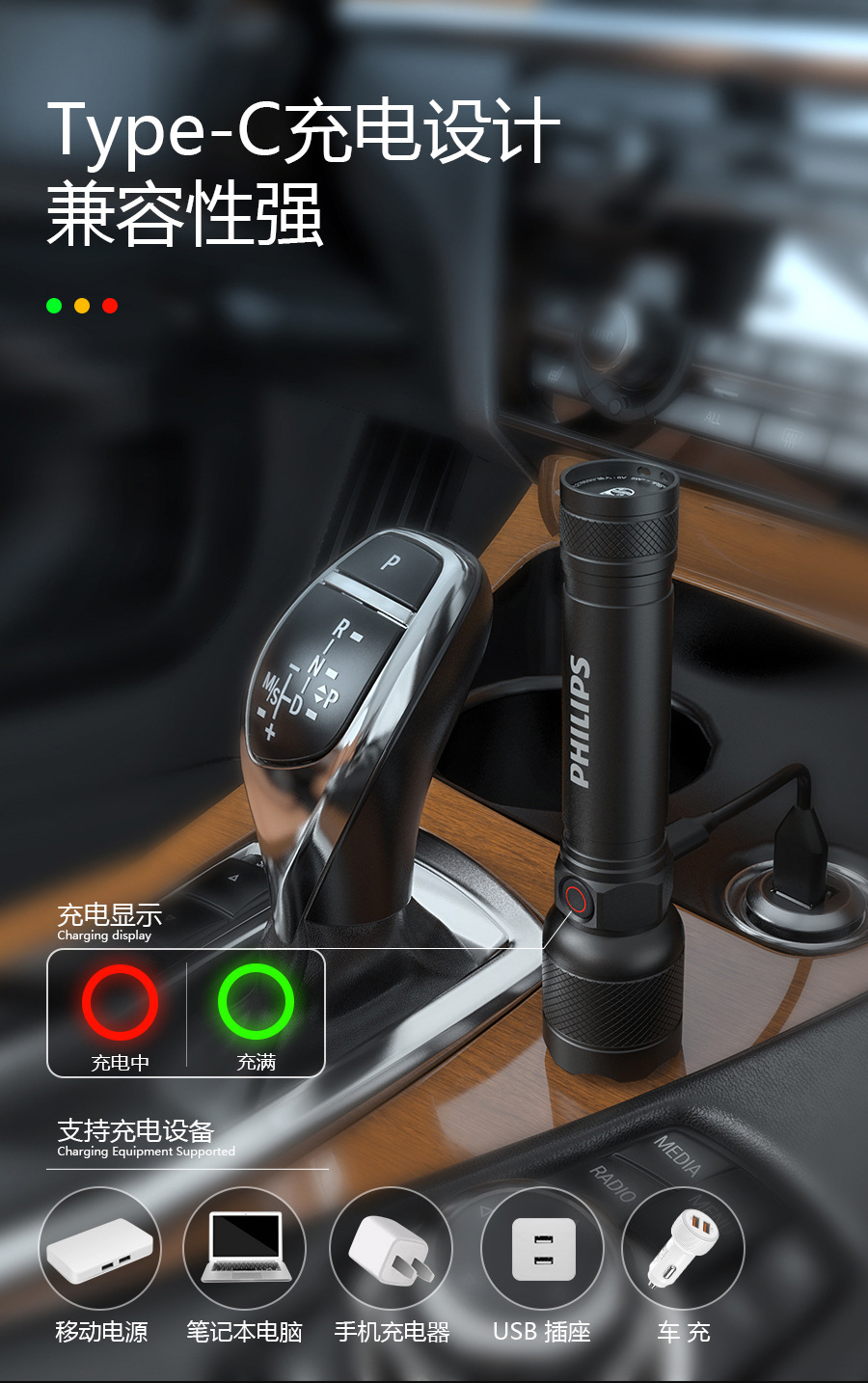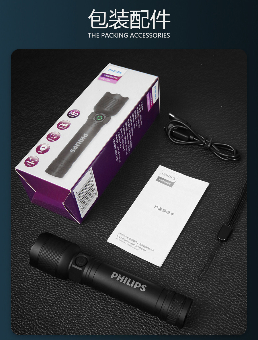 Linterna Philips SFL2188, linterna de luz fuerte, LED de largo alcance, para ciclismo al aire libre, carga de emergencia, linterna portátil