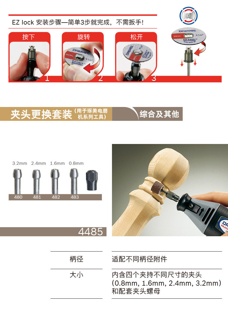 | Modelo | Accesorios de boquilla de eliminación de polvo,Accesorios rápidos del eje del cilindro de la cerradura EZ402,4485 Chuck accesorios de traje de reemplazo,402 accesorios del mandril,Portabrocas 4486 |