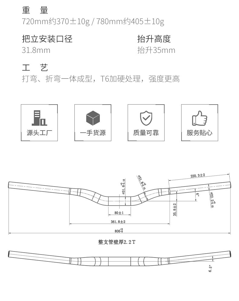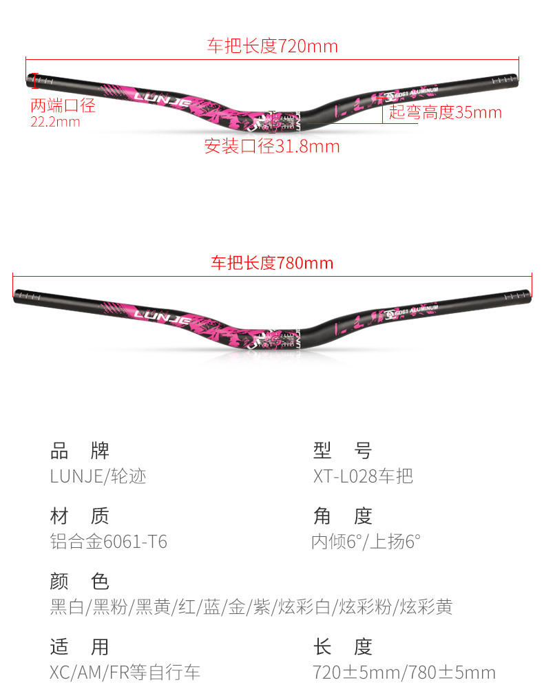 Bicicleta manillar cuesta abajo fuera de la carretera XC/AM manillar horizontal 720/780mm montaña gota seca etiqueta de color mango de golondrina
