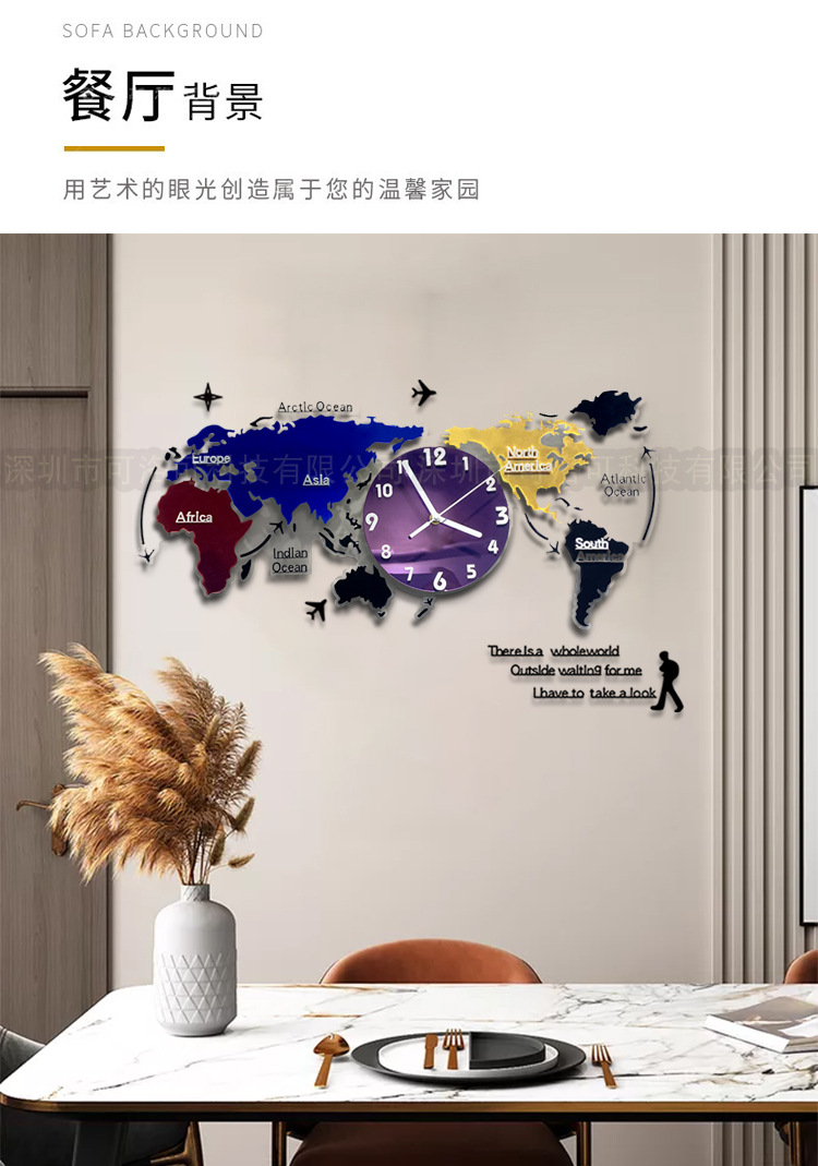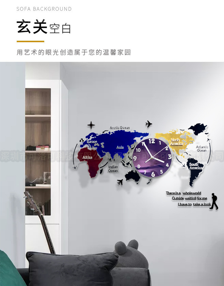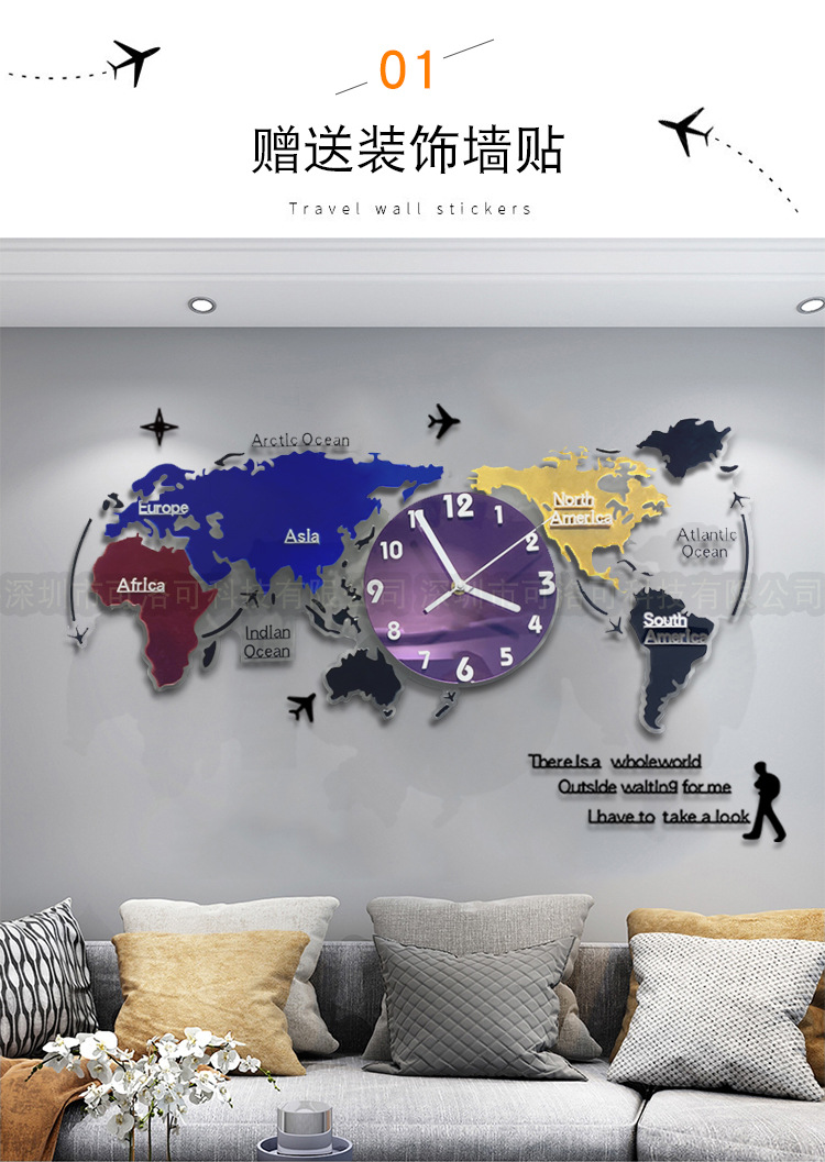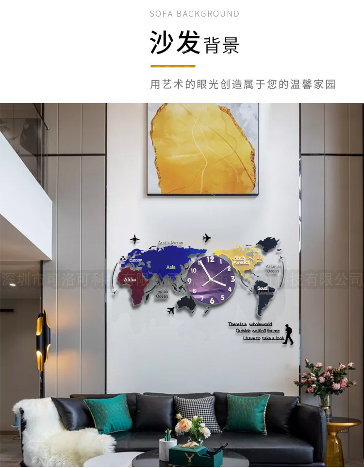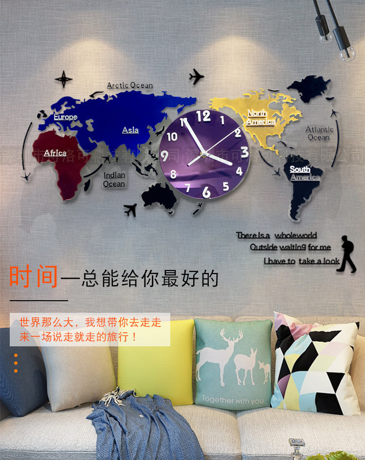Nuevo estilo europeo colorido acrílico mapa del mundo Reloj de pared sala de estar decoración reloj mudo reloj de arte atmosférico