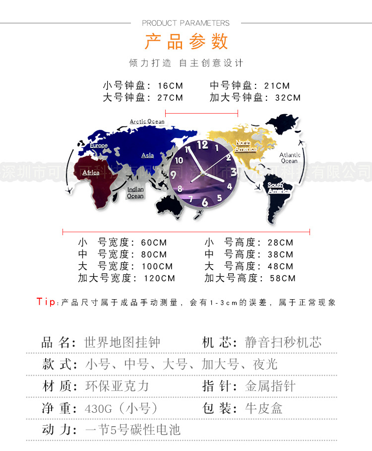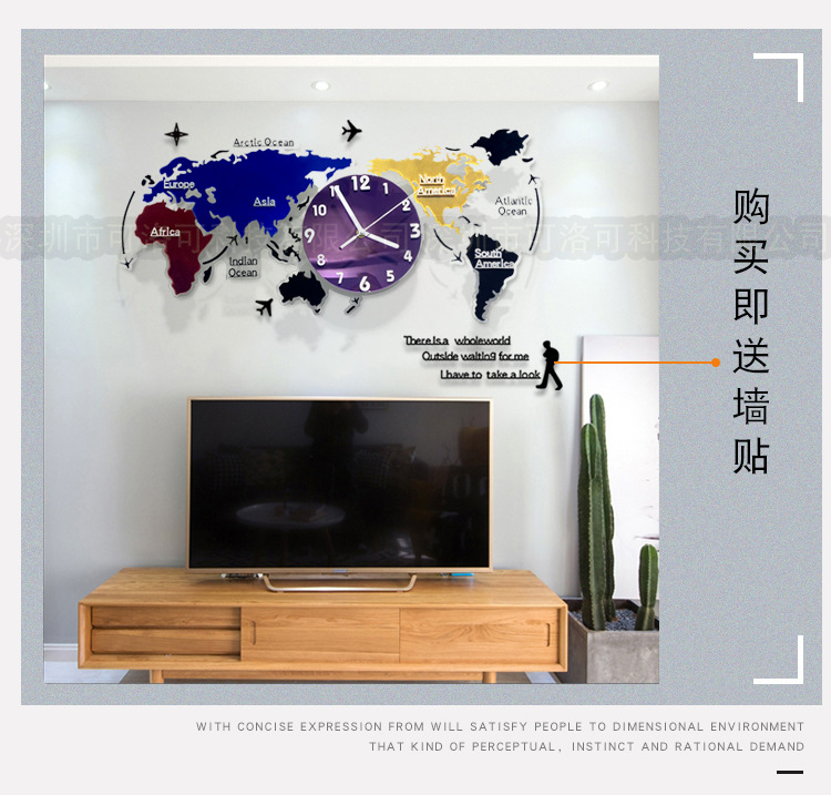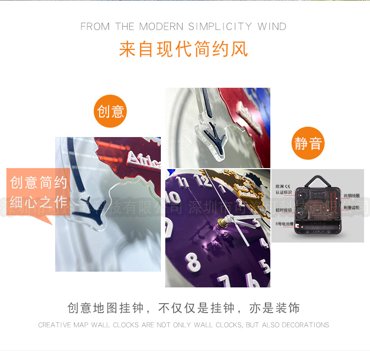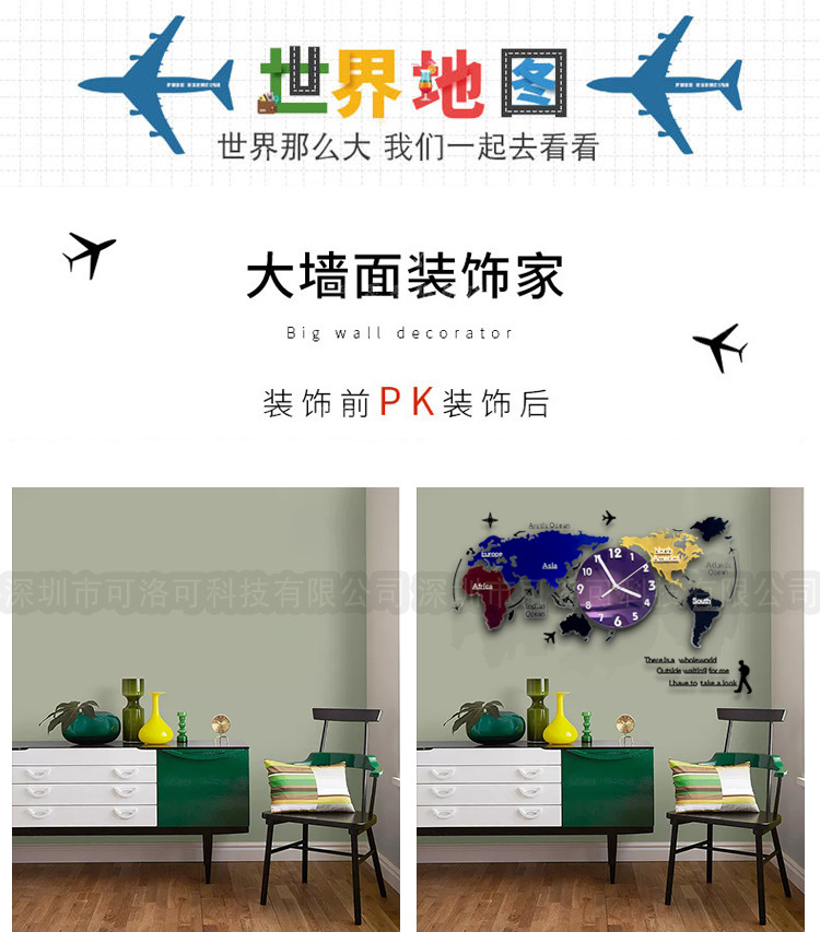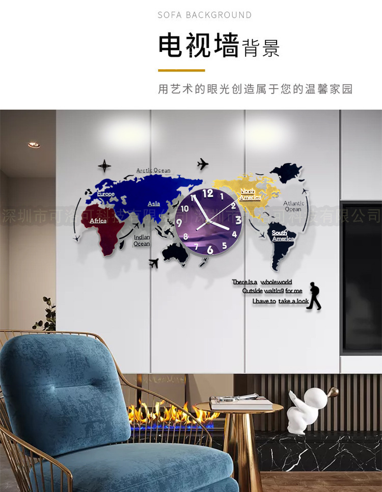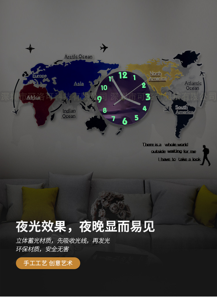 Nuevo estilo europeo colorido acrílico mapa del mundo Reloj de pared sala de estar decoración reloj mudo reloj de arte atmosférico