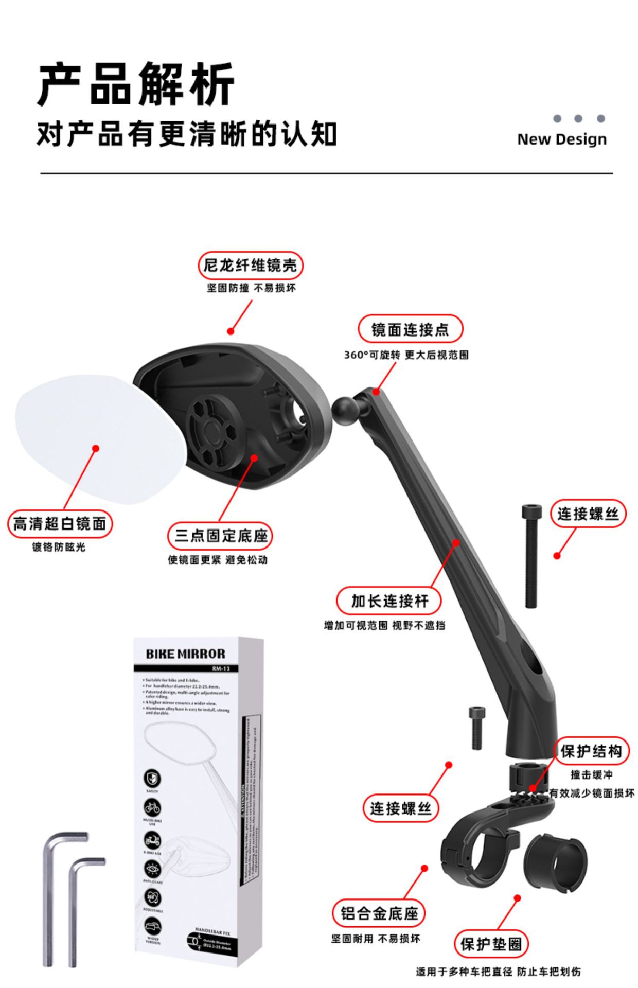 DRCKHROS reflector coche eléctrico Bicicleta espejo Retrovisor espejo retrovisor bicicleta de montaña Espejo Retrovisor Gran Angular