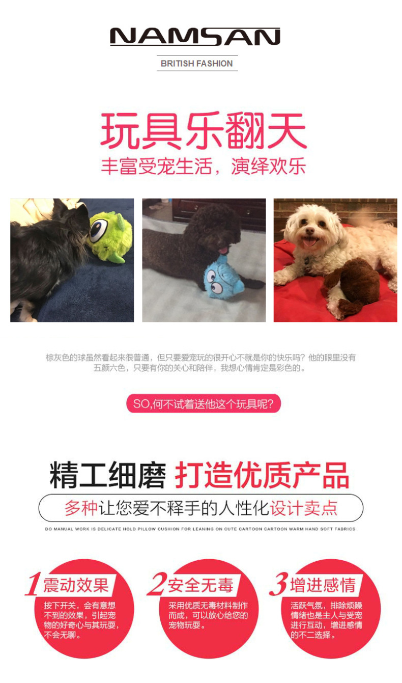 Suministros para mascotas perro sonido vibración eléctrica Bola de juguete perro resistente a los arañazos rebotando pelota de juguete de peluche ventas directas de la fábrica
