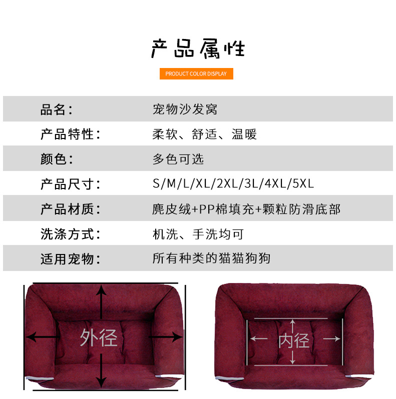 Transfronterizo nuevo sofá de perro de mascota de terciopelo de piel de ciervo otoño e invierno de sueño profundo perrera nido de mascota Fuente de fábrica al por mayor