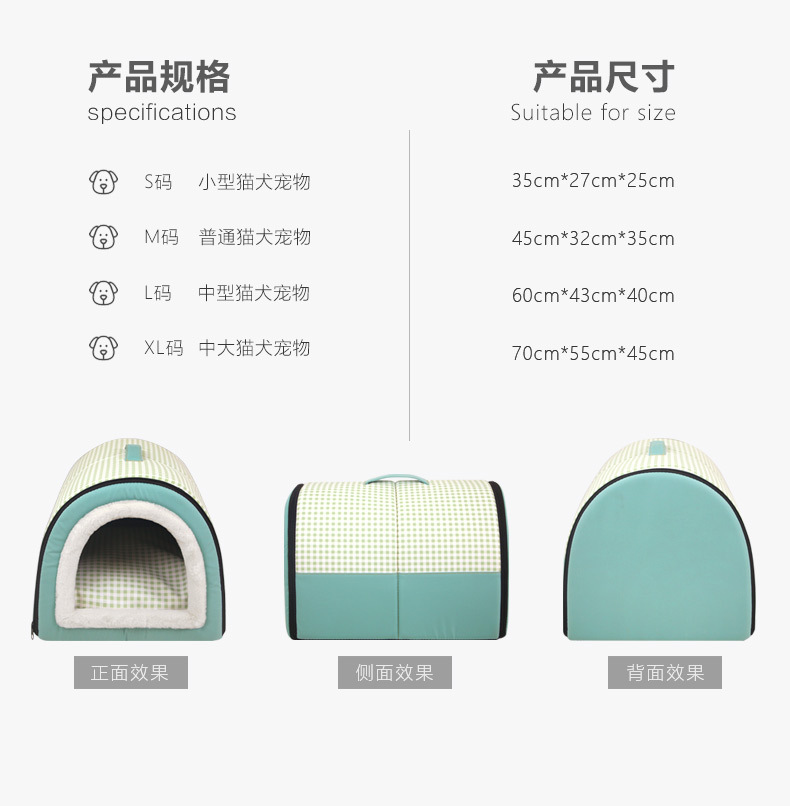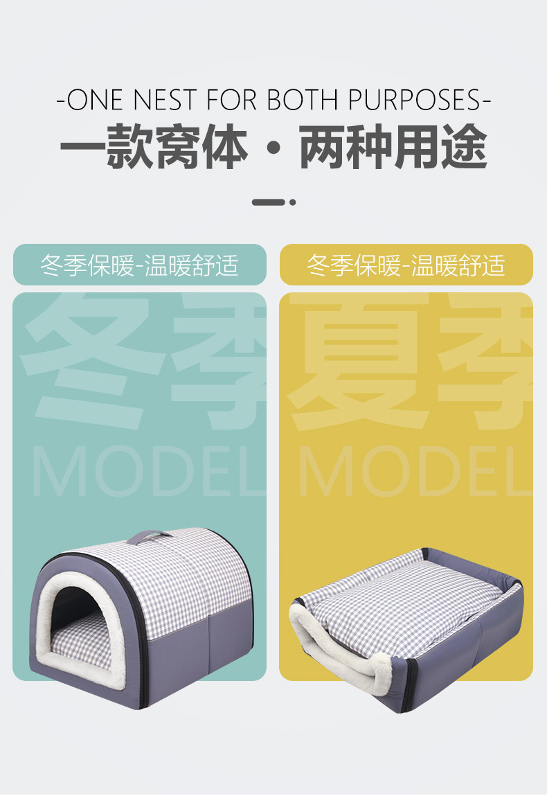 Invierno engrosada caliente Four Seasons universal semi-cerrado extraíble y lavable de doble uso de tamaño pequeño y mediano nido de gato nido de perro nido de Mascota