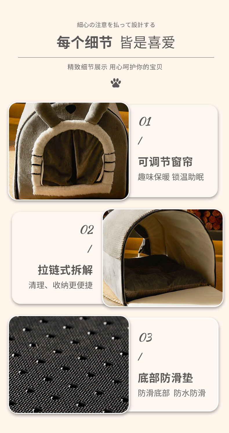 Perrera extraíble y lavable cuatro estaciones universal medio y pequeño perro de peluche perro casa gato nido invierno cálido mascotas suministros al por mayor