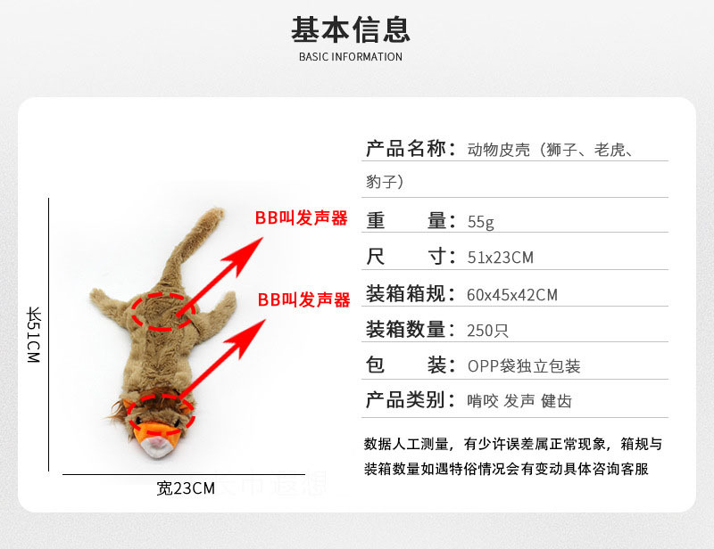Los fabricantes suministran juguetes para mascotas cuerda de algodón resistente a los mordiscos León Tigre leopardo cuero Shell molar juguetes de sonido