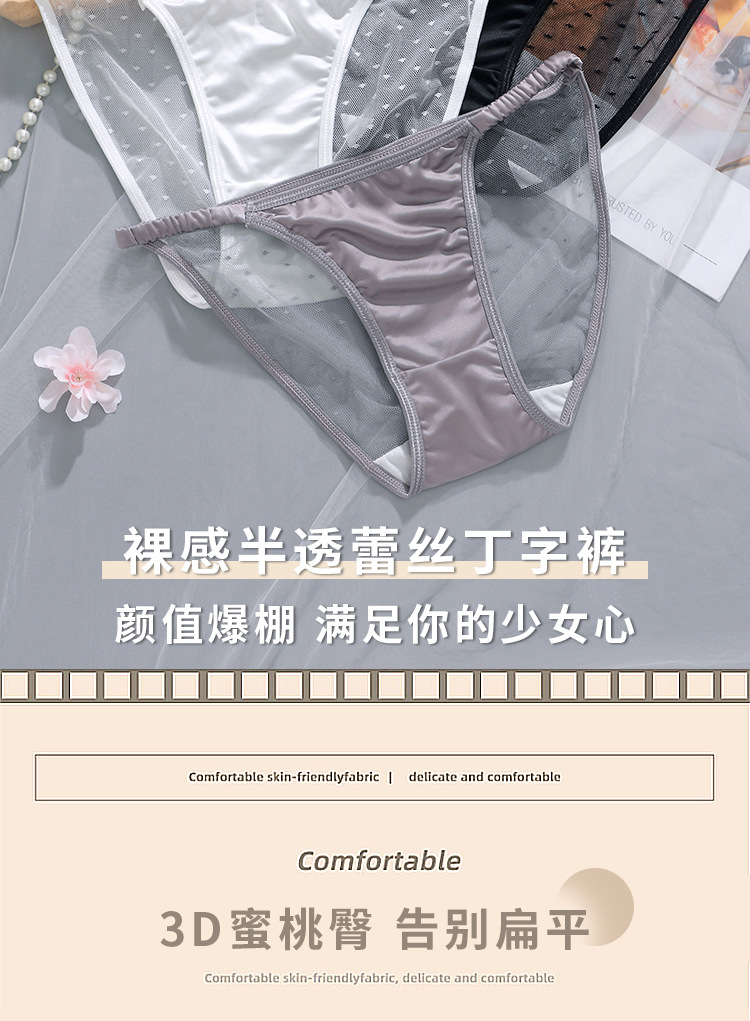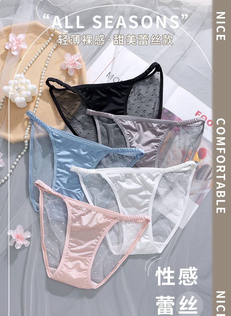 Nuevo estilo de ropa interior sexy encaje sin costuras de algodón entrepierna delgada transpirable Mediados de cintura sin costuras cómodos calzoncillos de las mujeres