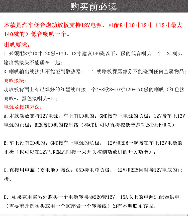 Amplificador de coche subwoofer amplificador placa base 12V de alta potencia al aire libre coche audio Monitor núcleo amplificador placa