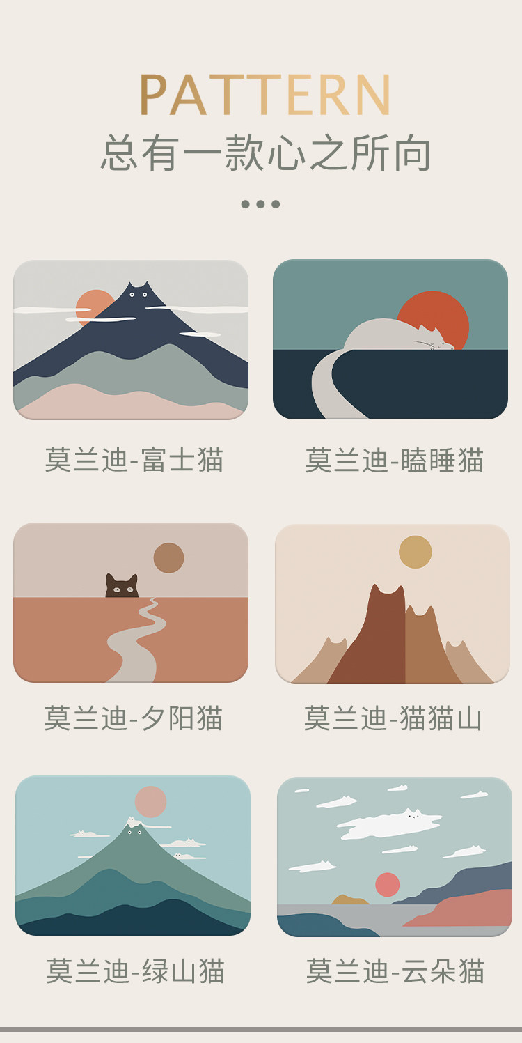 | Color | Morandi-Fuji gato,Morandi-Bobcat verde,Morandi-gato soñoliento,Morandi-gato nube,Morandi-Puesta de sol gato,Morandi-Cat Montaña |
