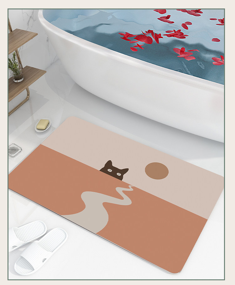 Alfombra de piso de baño de barro de diatomeas suave dibujos animados lindo boca de inodoro alfombra de piso absorbente inodoro estera antideslizante de secado rápido