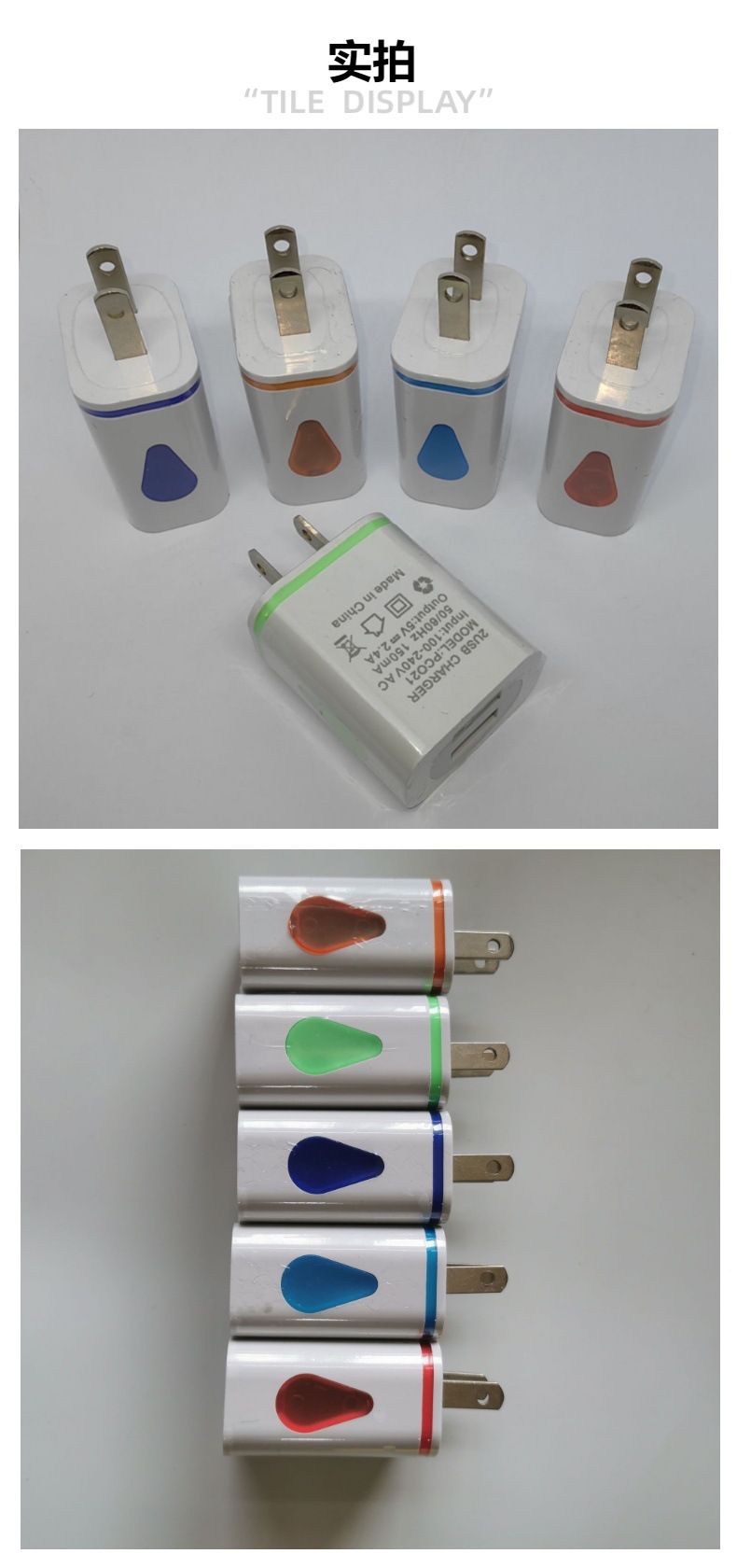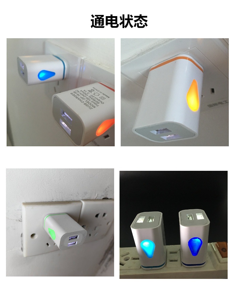 Suministro transfronterizo Dual USB gota de agua LED cargador luminoso estándar europeo estándar americano teléfono móvil 2.1A color cargador rápido