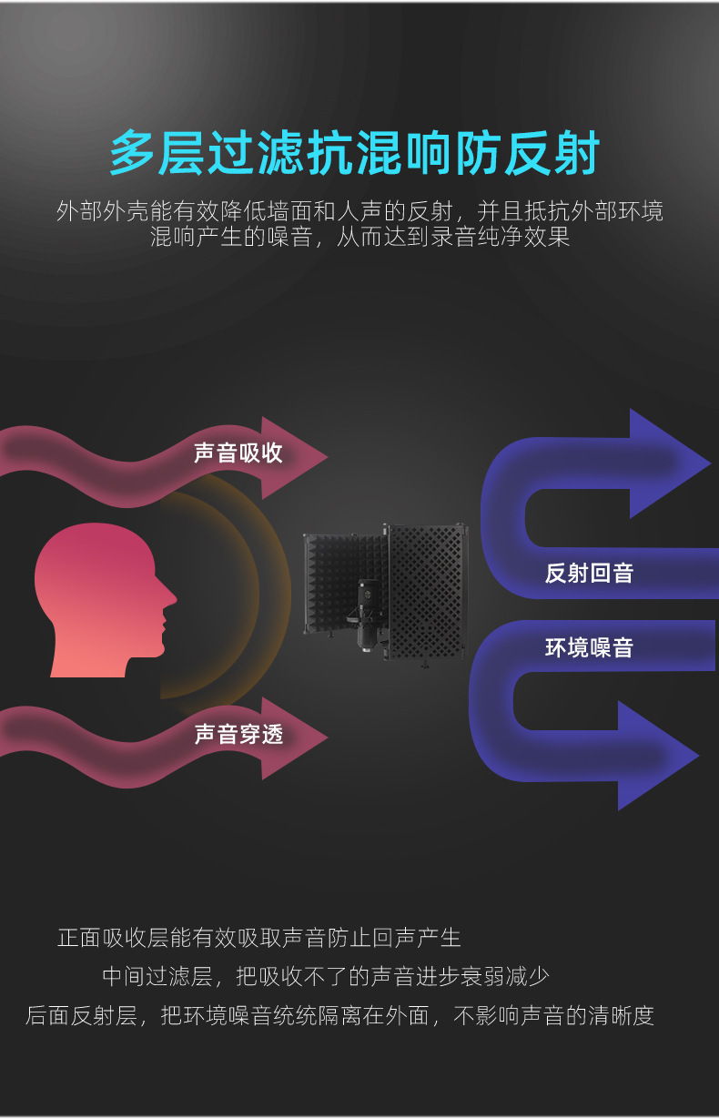 Filtro Antipop JIY para Micrófono, Cubierta Insonorizante para Estudio de Grabación, Micrófono de Transmisión en Vivo, Reducción de Ruido, Esponja Absorbente de Sonido, Altavoz de Tres y Cinco Puertas