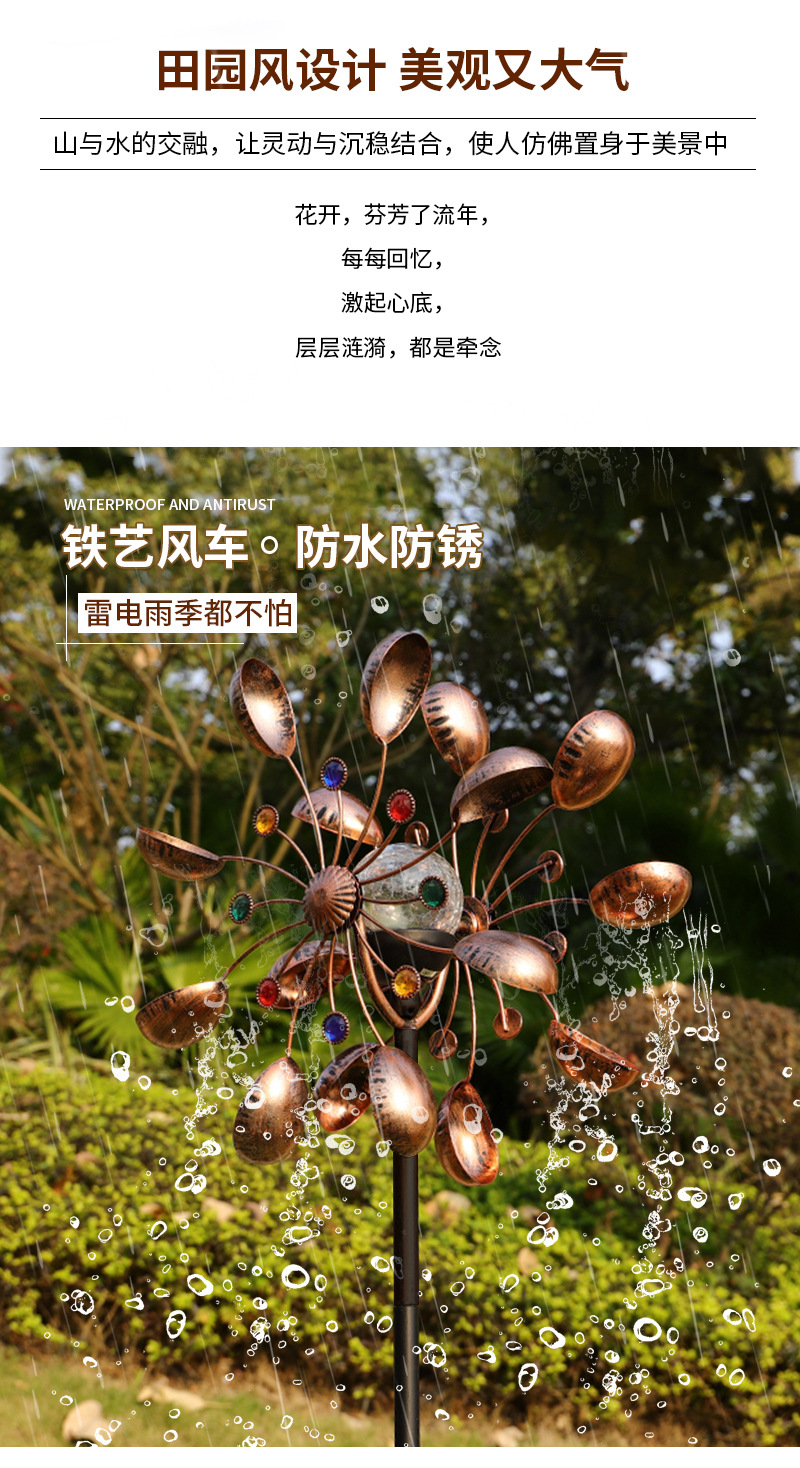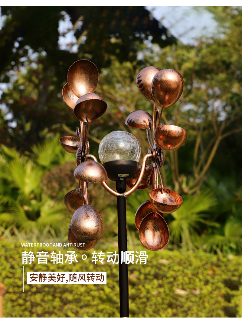 Amazon LED lámpara solar molino de viento lámpara enchufable nueva transfronteriza al aire libre decorativo césped pétalo lámpara de color