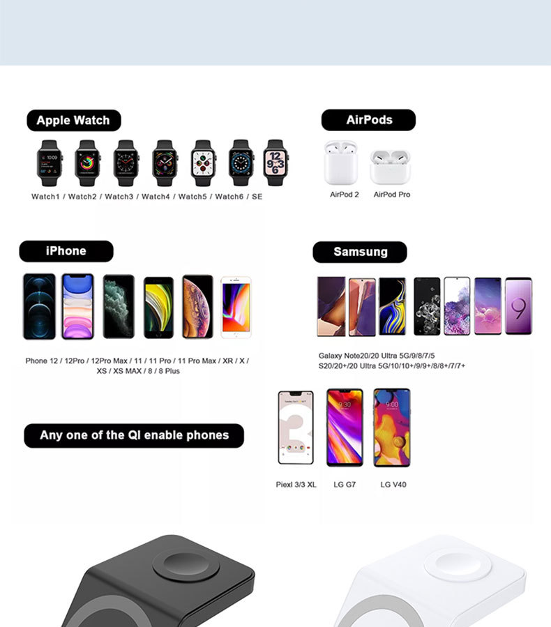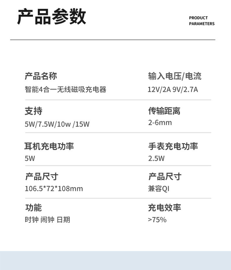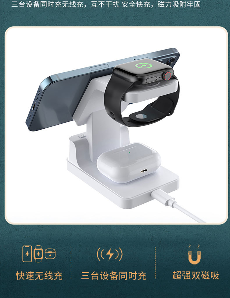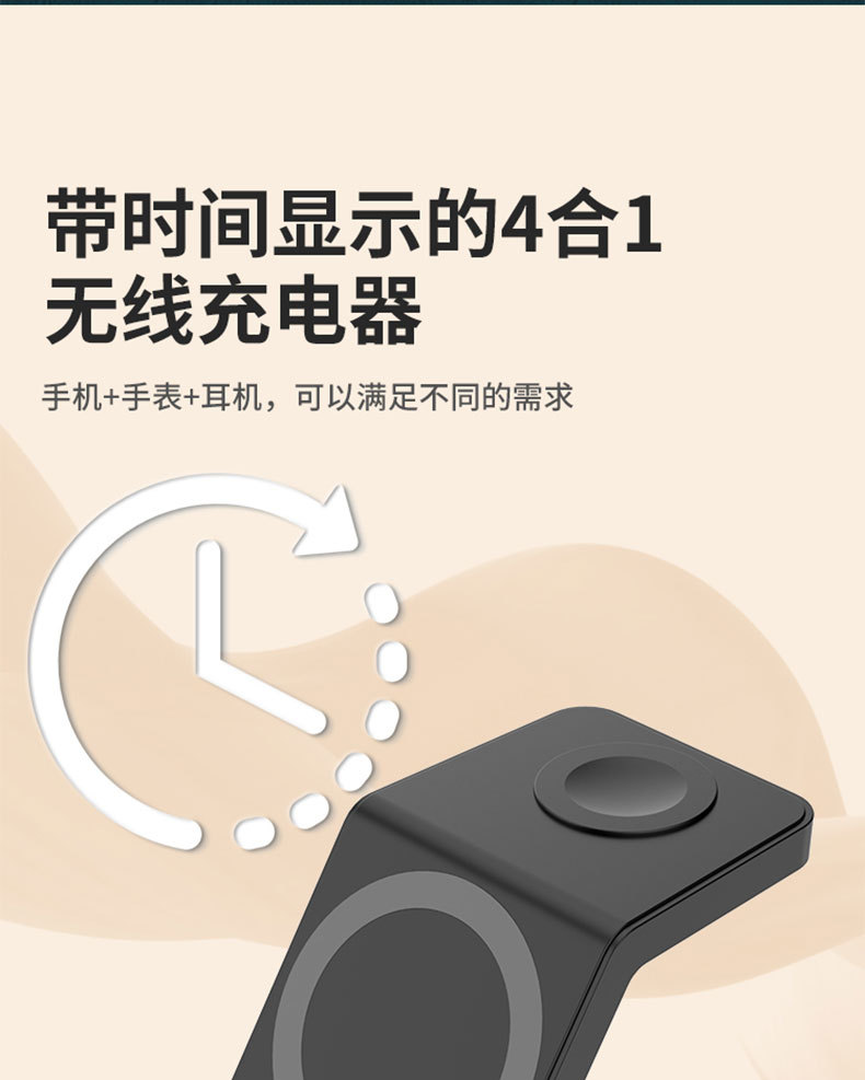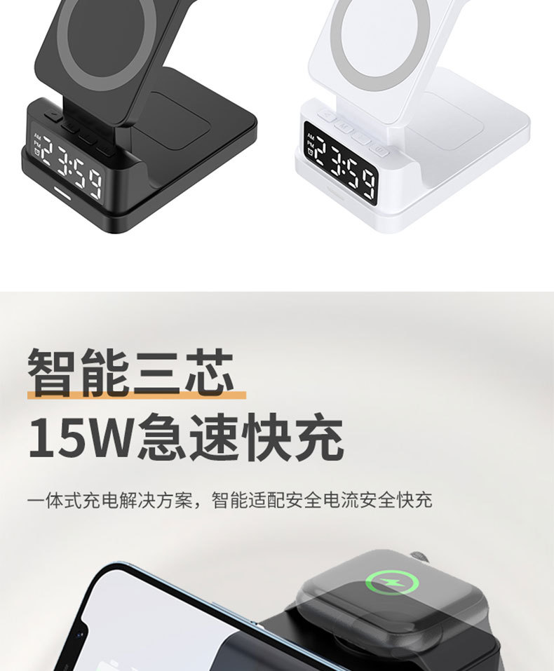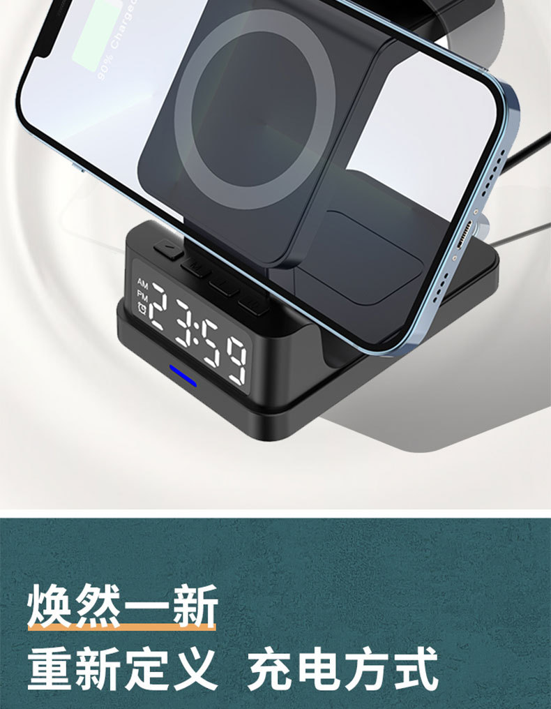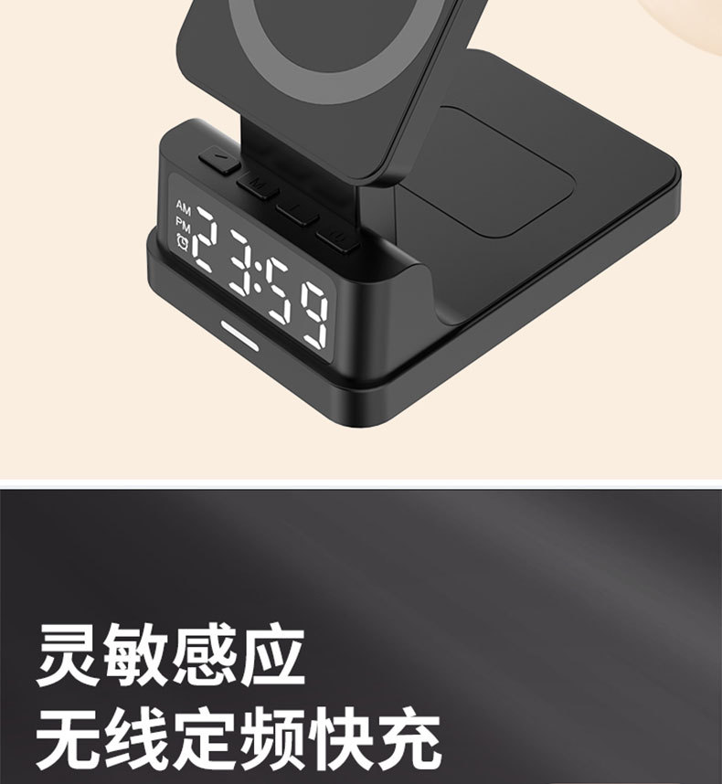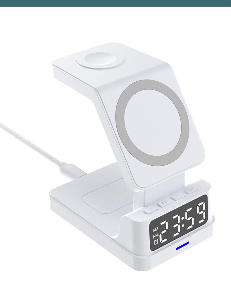 Escritorio de cuatro en un soporte magnético del teléfono móvil cargador inalámbrico 15W multifunción con reloj digital cargador inalámbrico