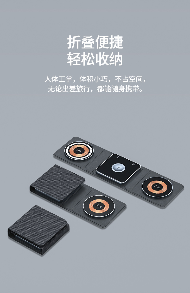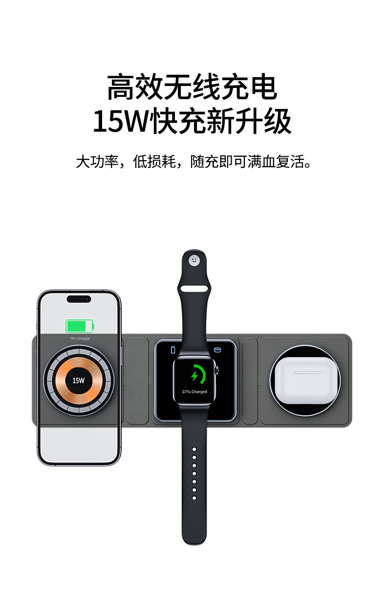 Transfronterizo Magsafe15W magnético inalámbrico de carga rápida teléfono móvil auricular reloj transparente tres en uno plegable carga inalámbrica