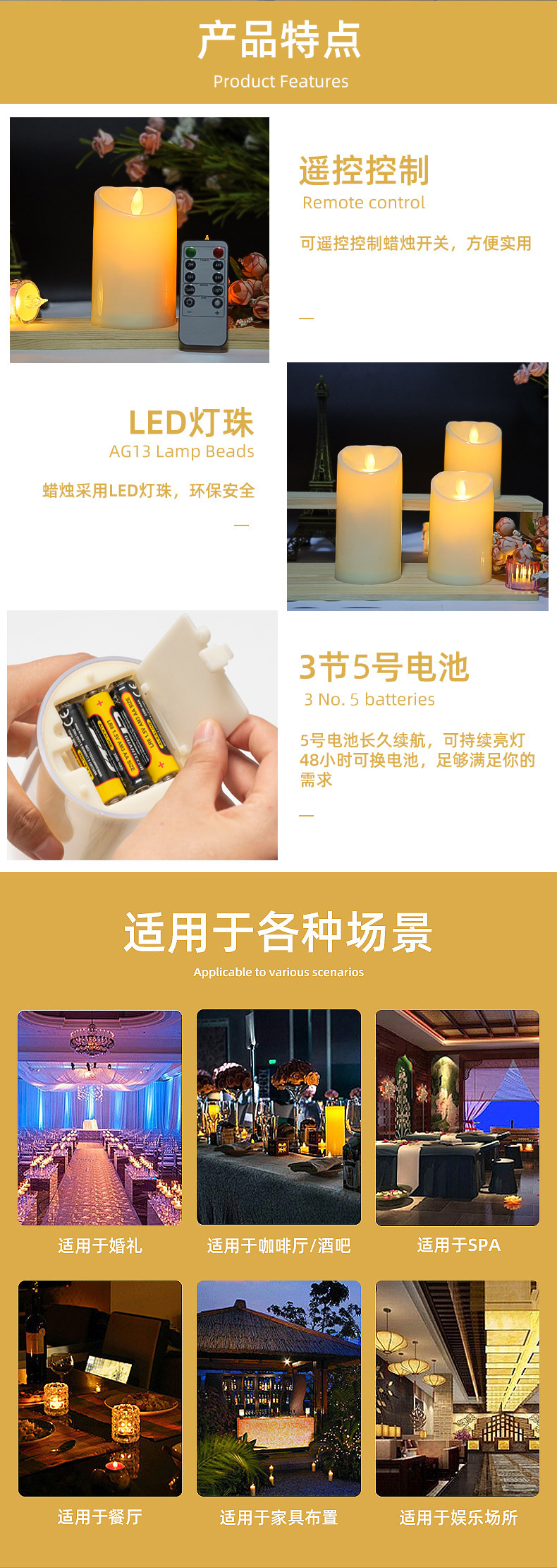 Venta directa de fábrica led luz de vela electrónica oscilante hotel KTV decoración luz de vela sin humo luz de ambiente de boda de cumpleaños
