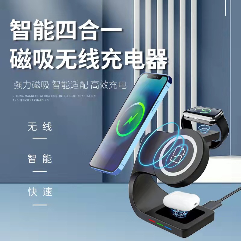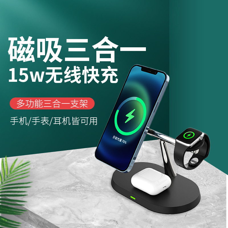 Cargador inalámbrico vertical de tres en uno 15W transfronterizo para el cargador inalámbrico multifunción de escritorio de Huawei Apple al por mayor