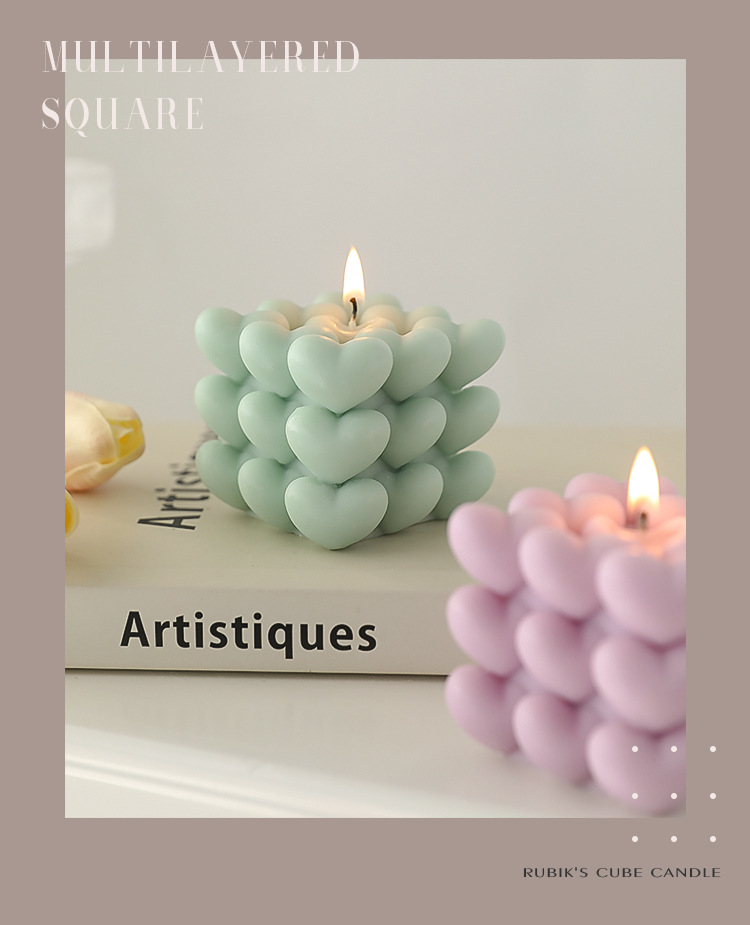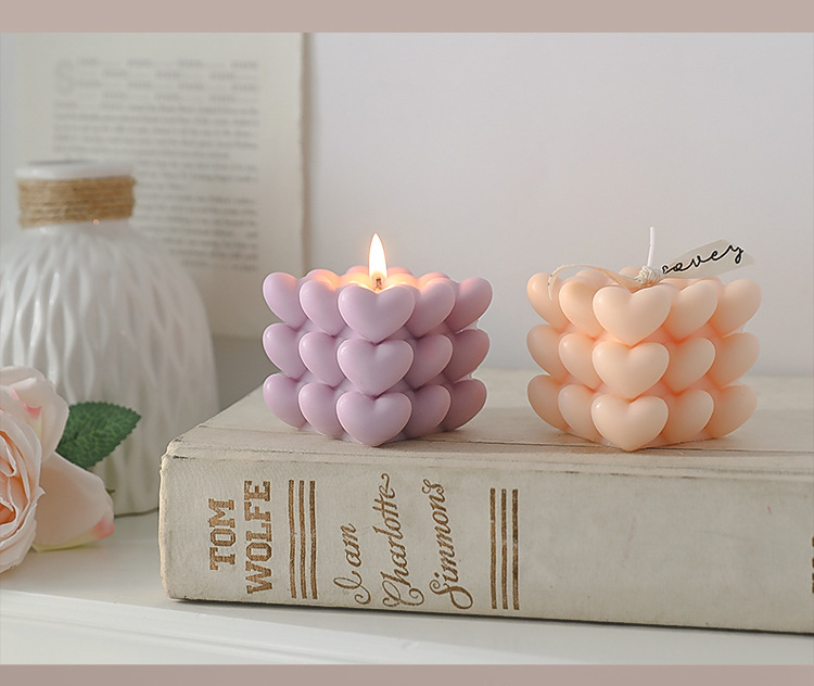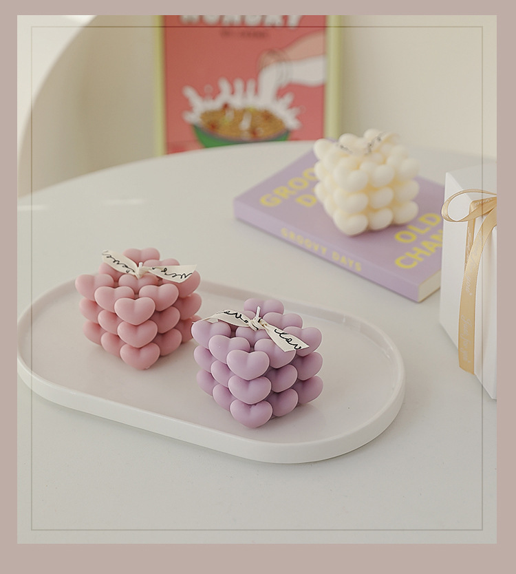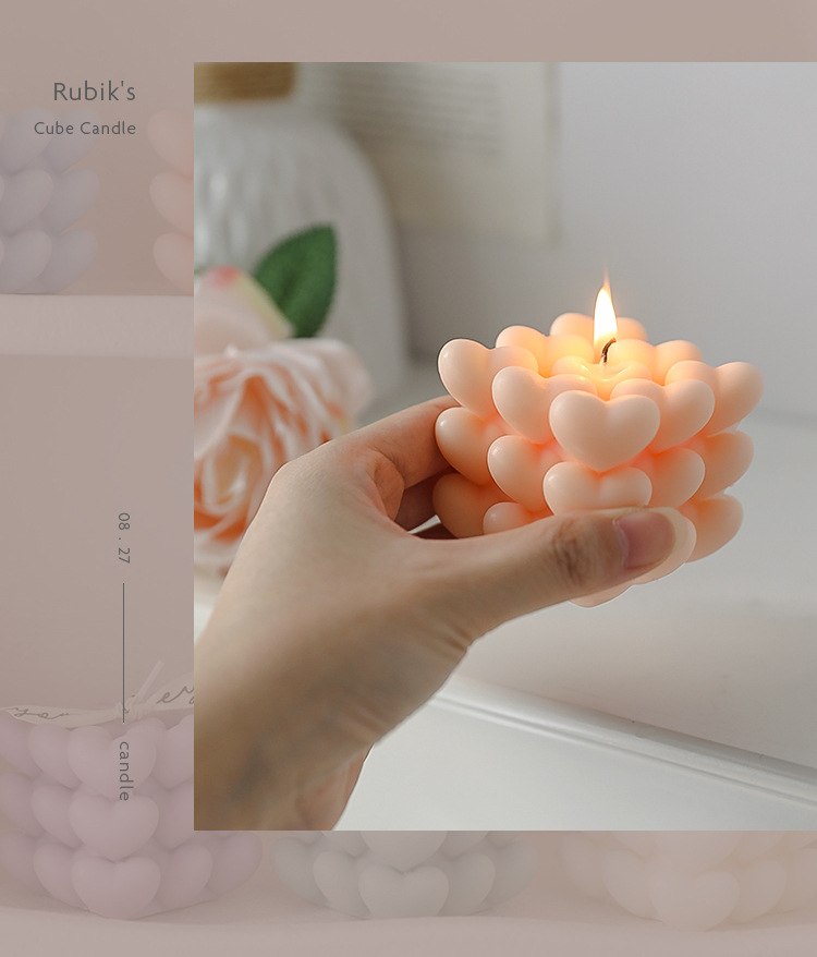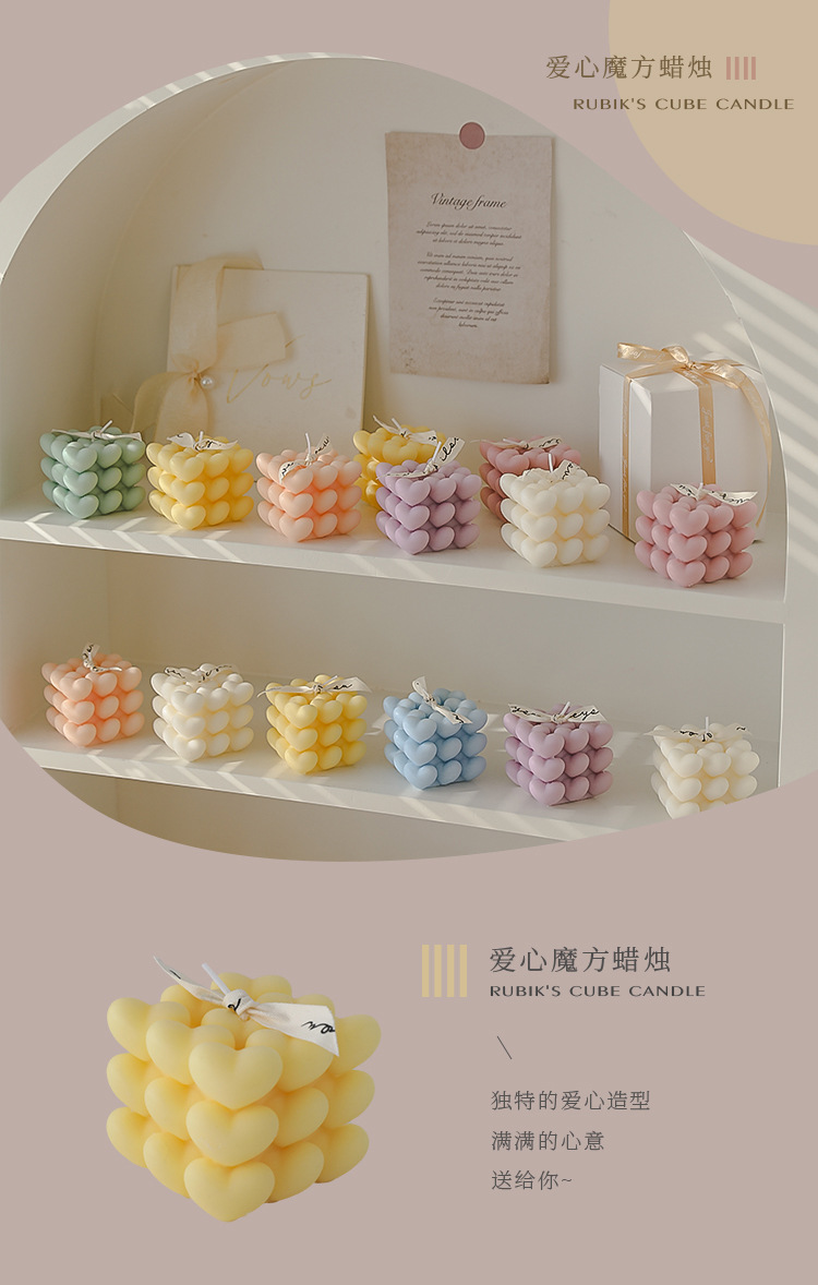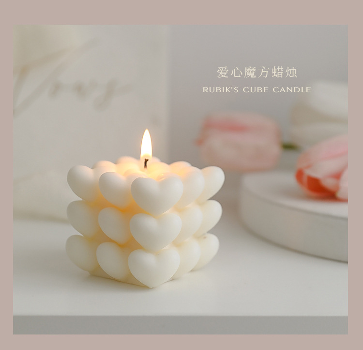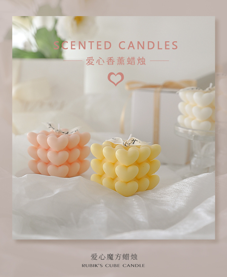 Regalos de San Valentín Recuerdos de aromaterapia navideña Regalos pequeños Cubo de Rubik Decoración de velas en forma de atmósfera romántica en forma de corazón