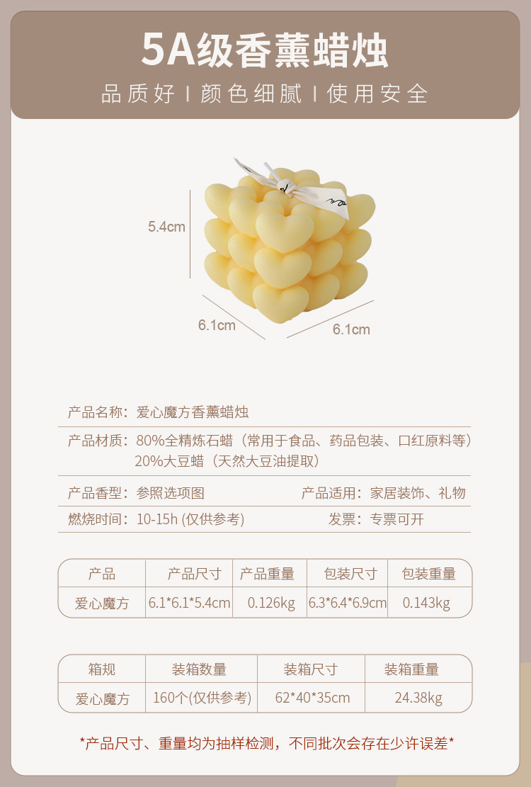 | Producto | Cubo de amor vela aromática |