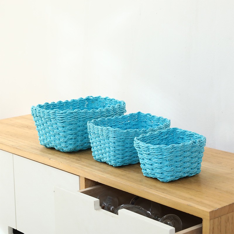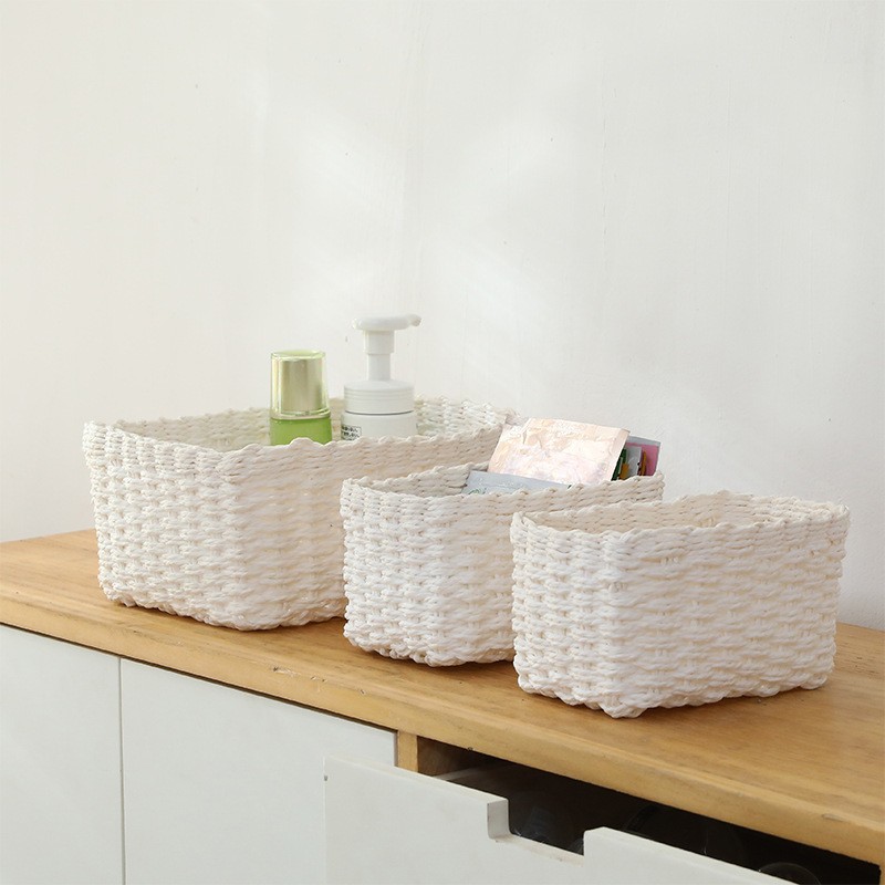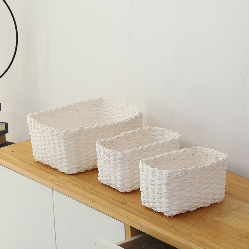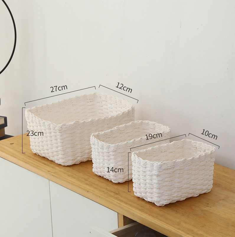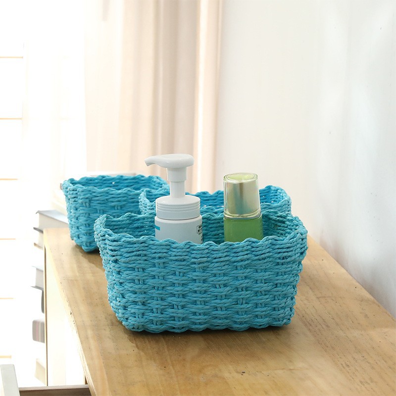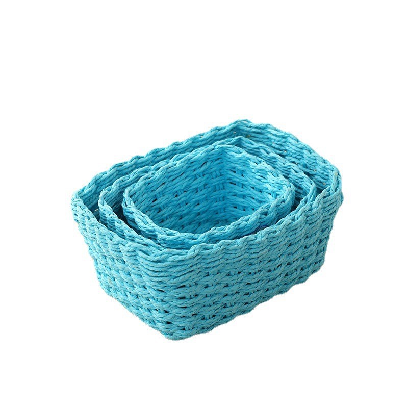 Caja de almacenamiento de artículos diversos de escritorio de paja hecha a mano tejida pasillo canasta de almacenamiento de ropa de habitación cesta de almacenamiento de cosméticos