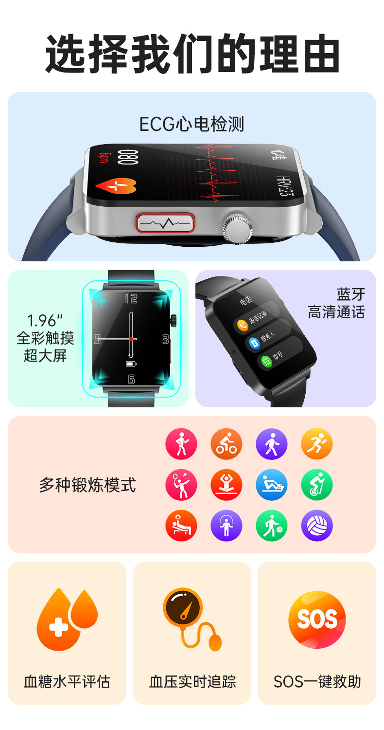 Reloj inteligente transfronterizo KS03PRO con ECG, electrocardiograma, medición de presión arterial, oxígeno en sangre y temperatura, pulsera de fabricante, venta transfronteriza de gran éxito.