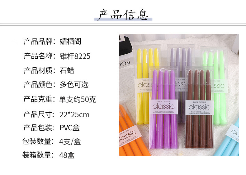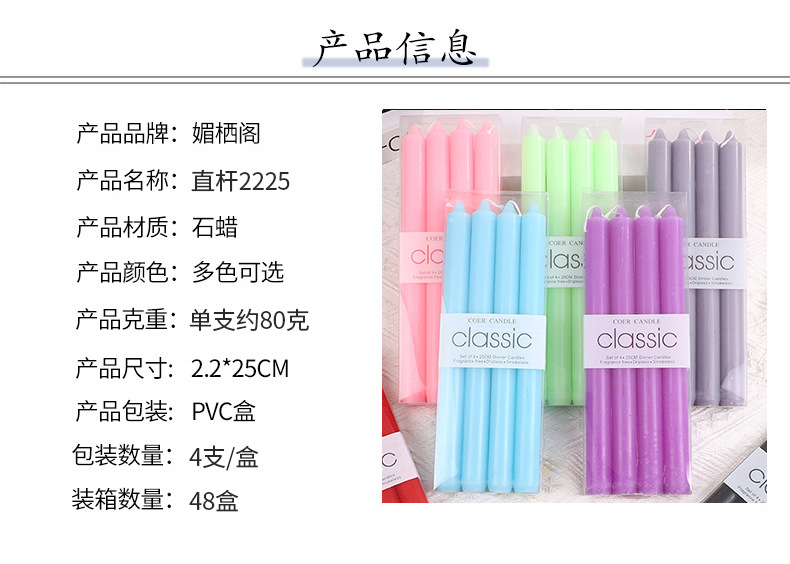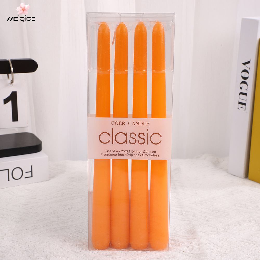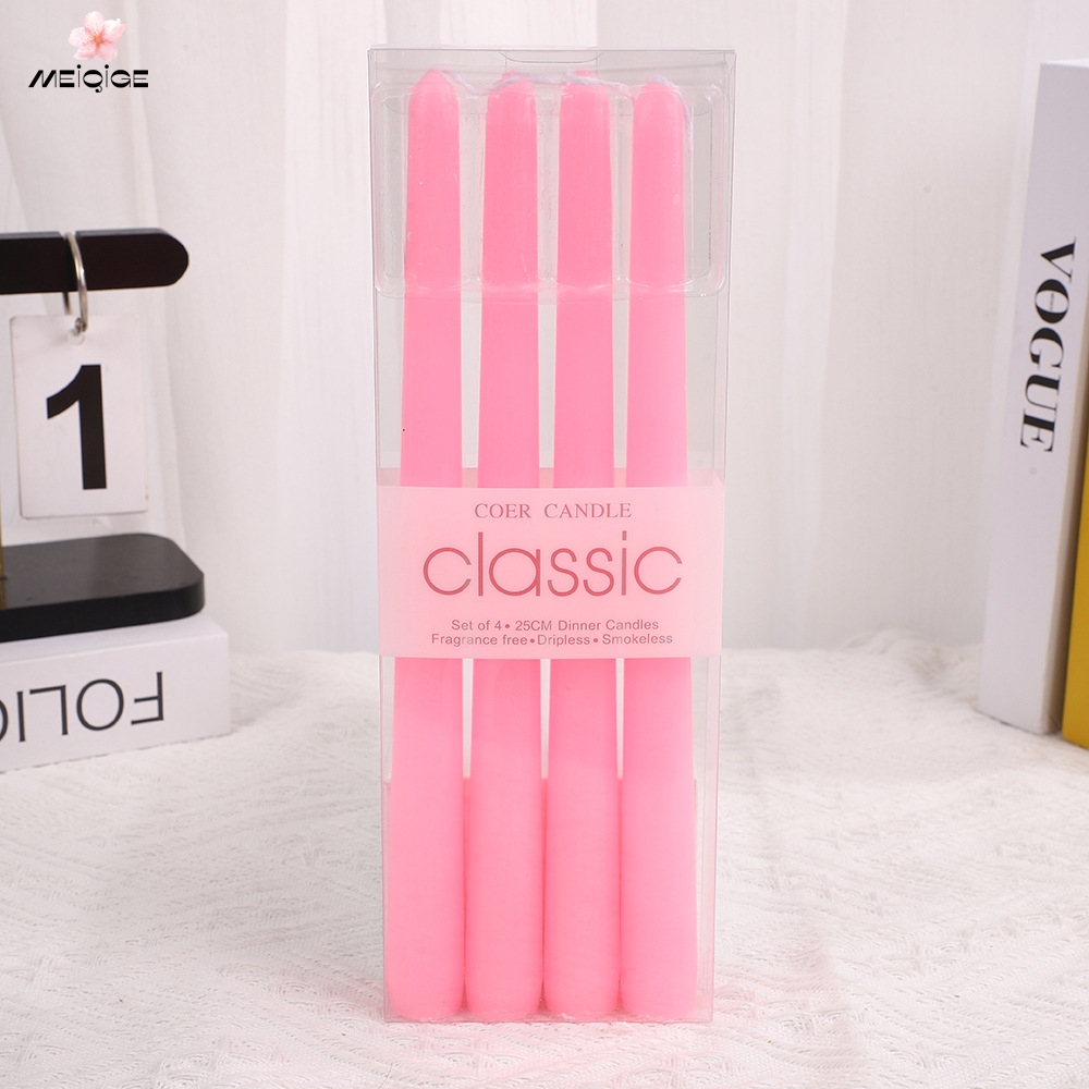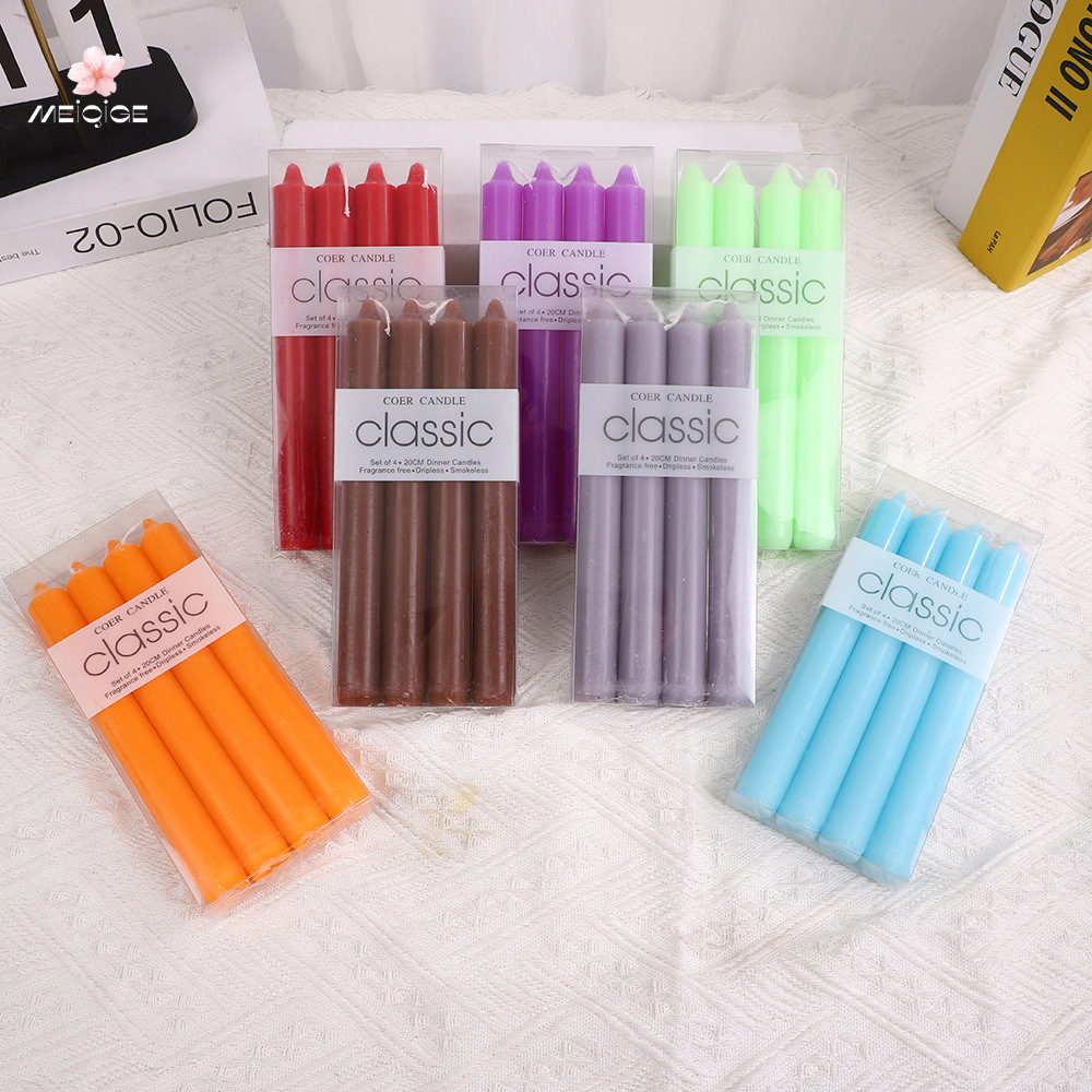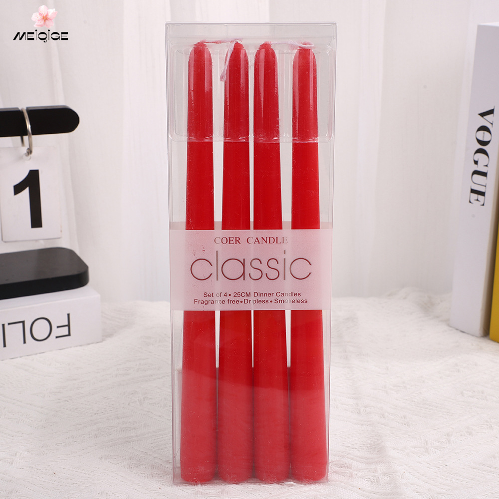 4 unids/caja cono vela 2,2*25cm Internet Celebrity Europea rojo y blanco barra larga vela cena occidental restaurante Pilar cera