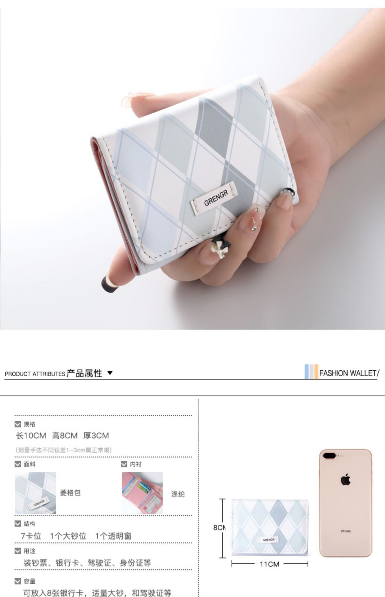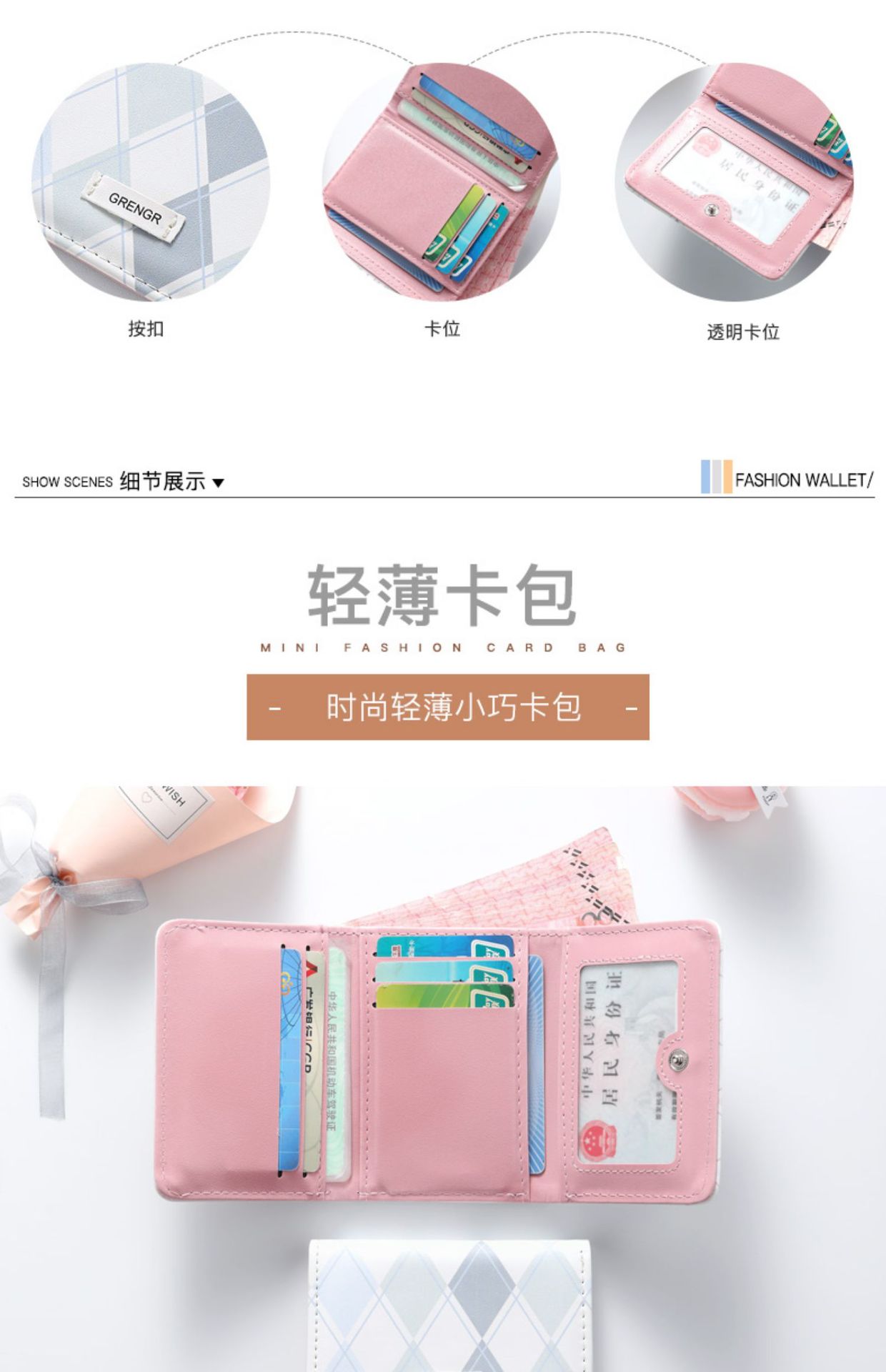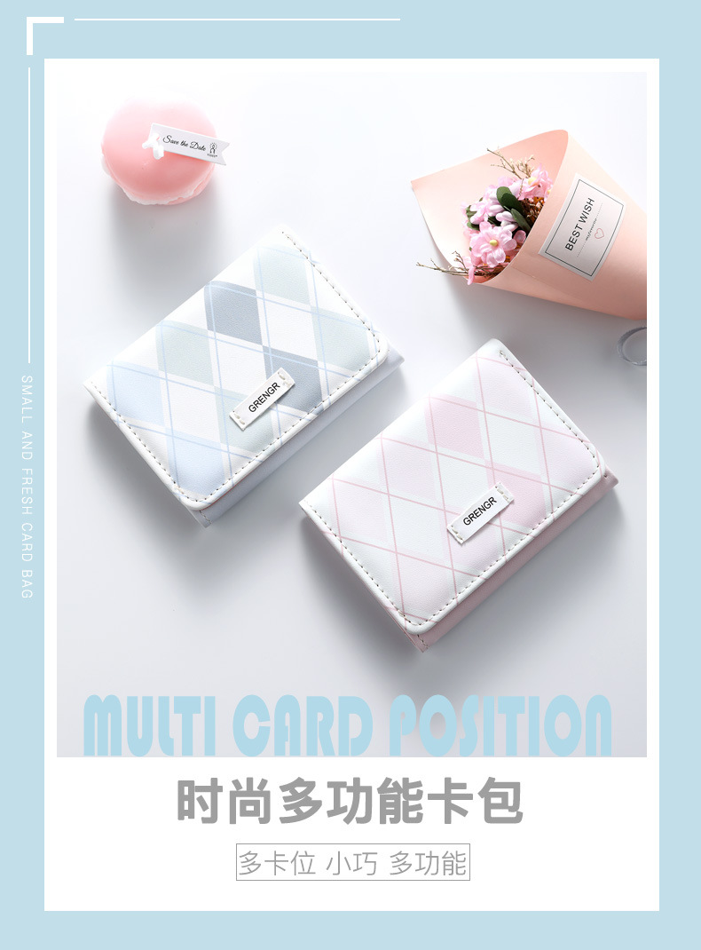 Cartera a cuadros azul sal marina fresca simple estilo ins coreano multifuncional estudiante cambio titular de la tarjeta uno. Uno
