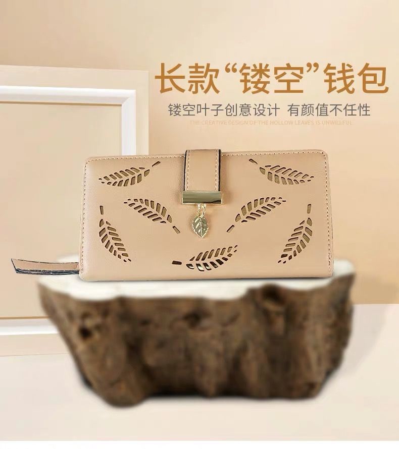 Cartera larga simple y dulce para jóvenes, monedero tres en uno, tarjetero antimagnético con ranuras para múltiples tarjetas, diseño hueco elegante.