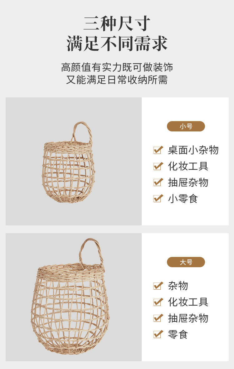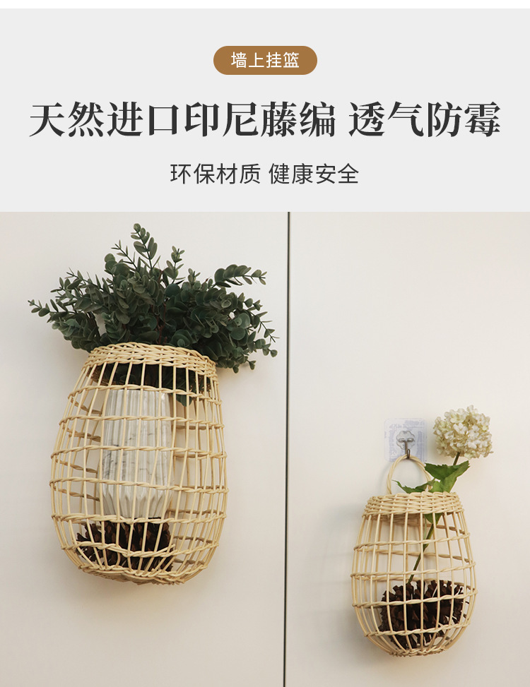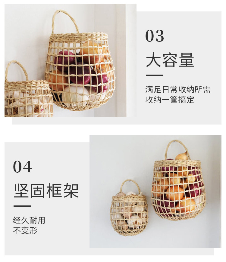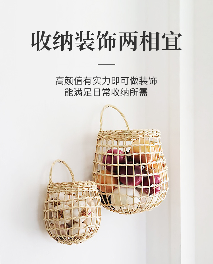 INS cesta tejida de ratán nórdico cocina cesta de almacenamiento de jengibre y ajo cesta colgante de pared vintage cesta pequeña cesta de flores cesta de cocina cesta colgante