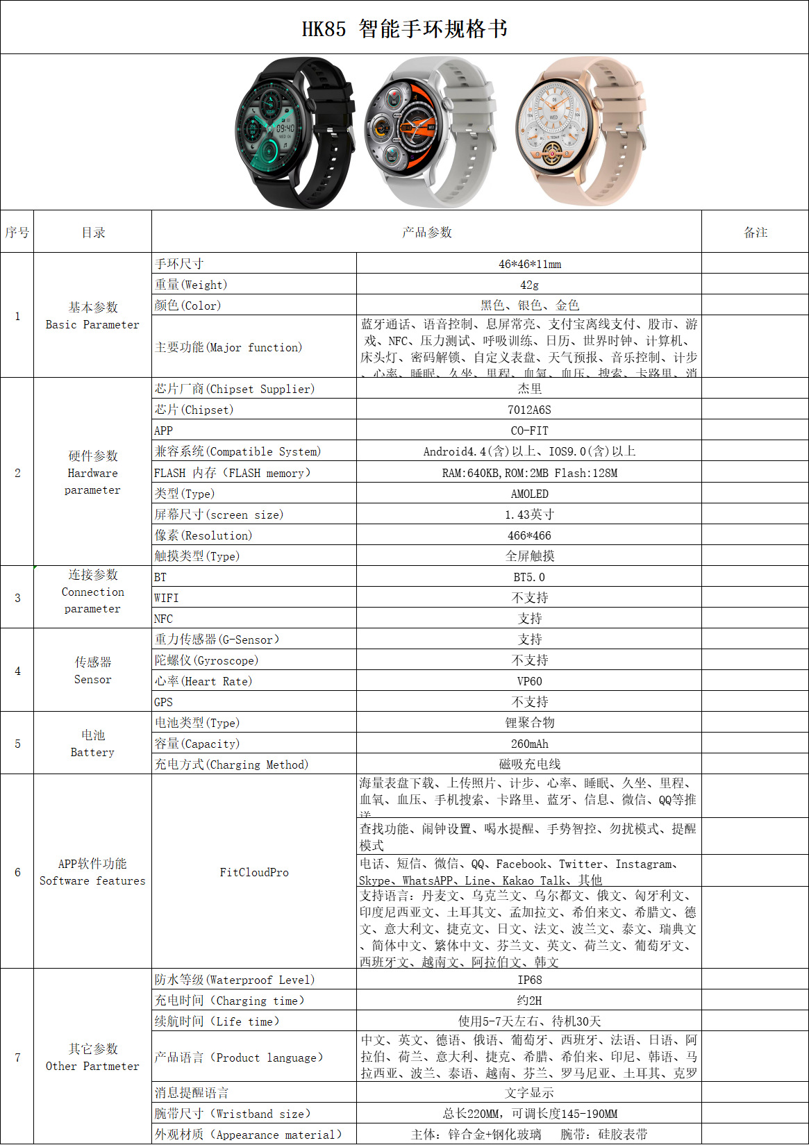 Nuevo HK85 reloj inteligente AOLED HD pantalla Bluetooth llamada música sangre oxígeno presión arterial multi-ejercicio paso conteo