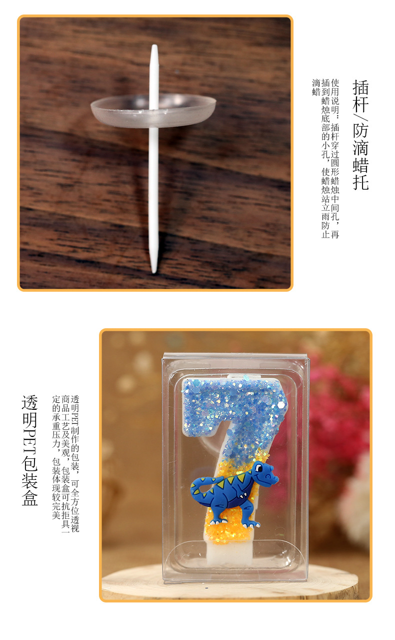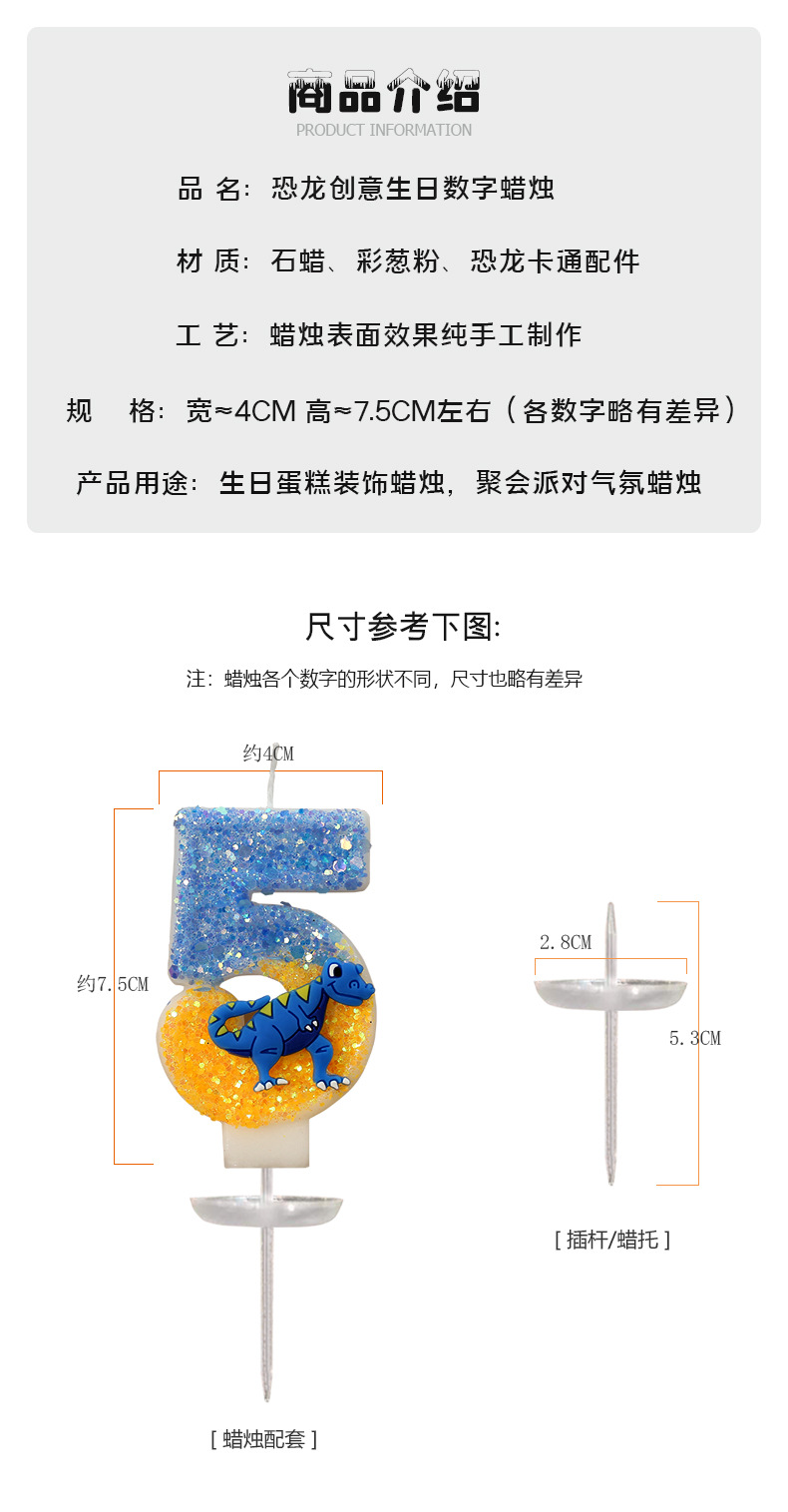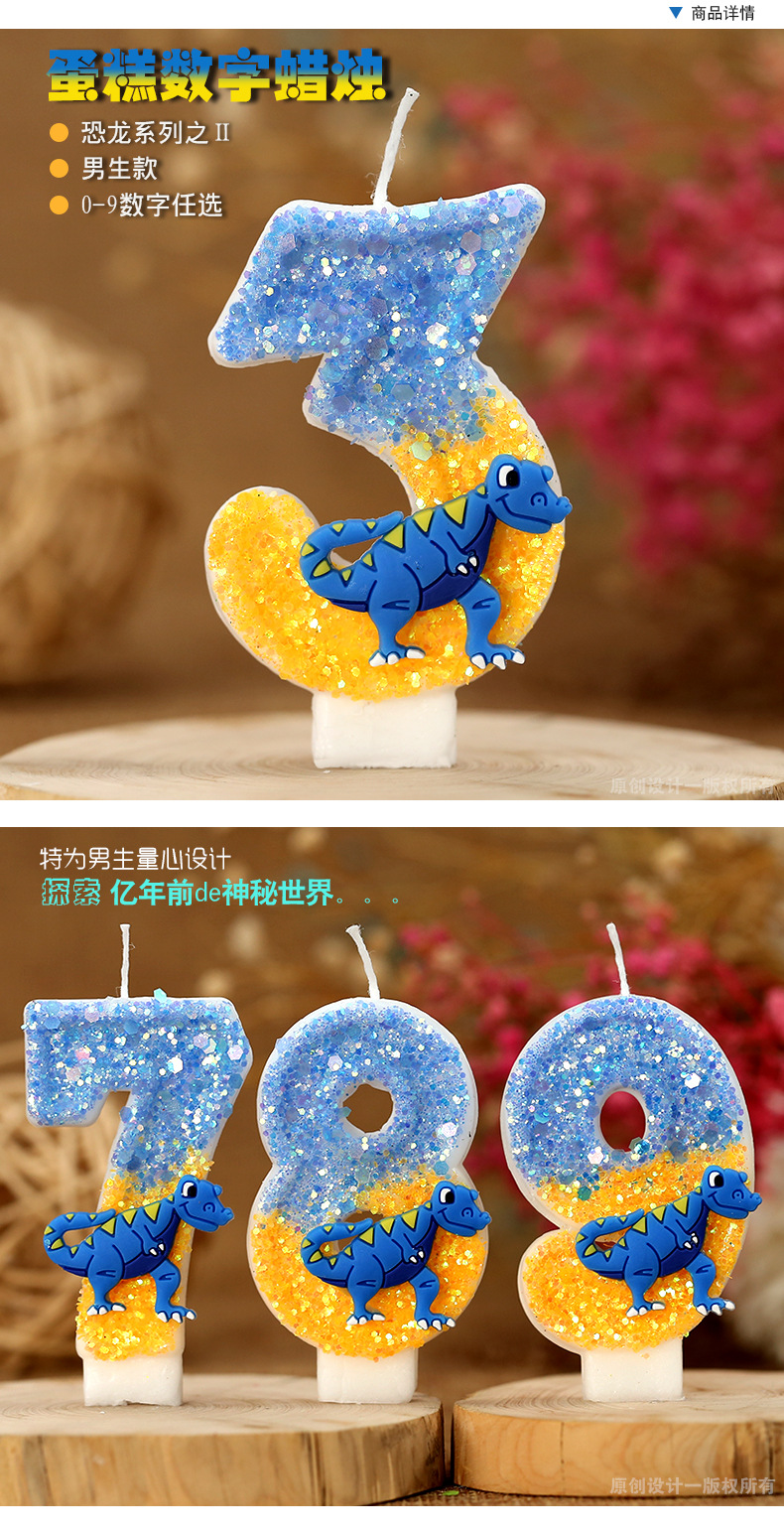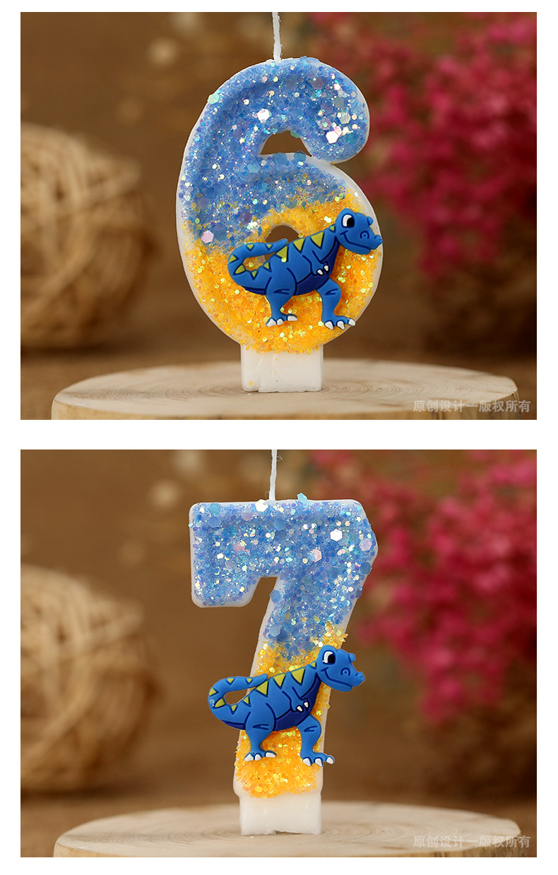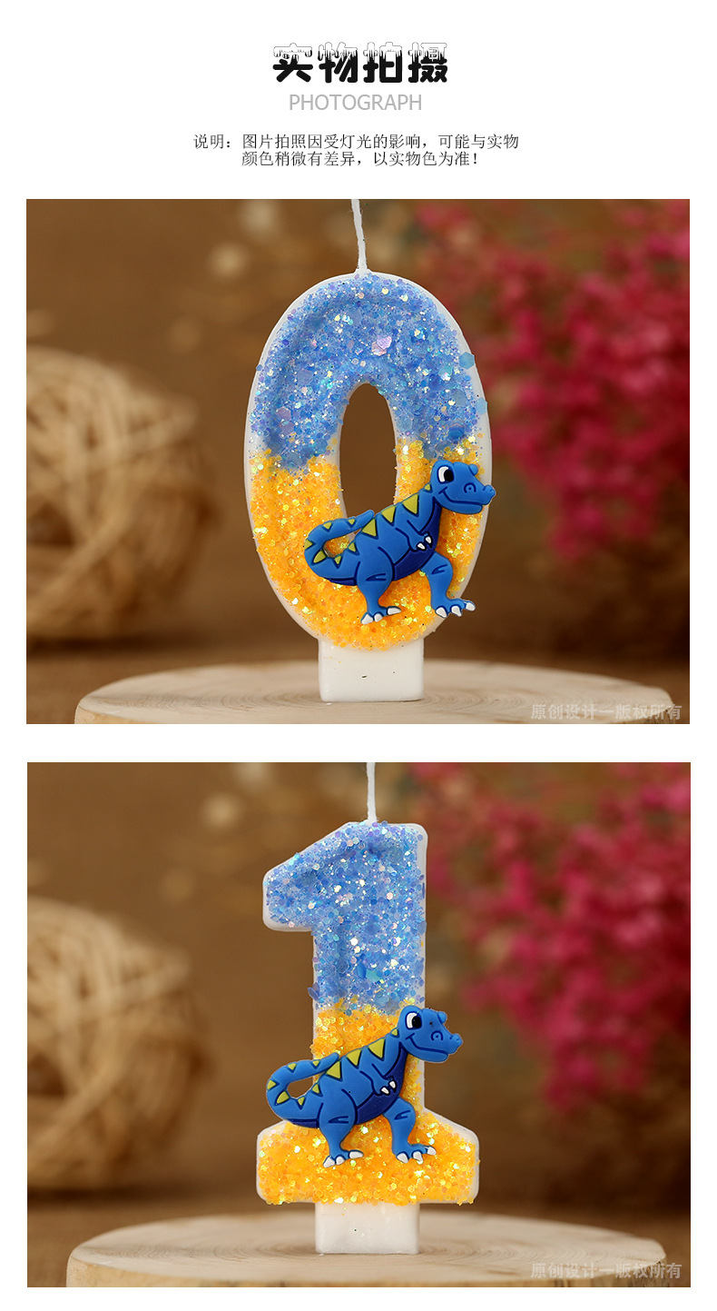 Vela de cumpleaños de niño Decoración de Pastel vela digital forma de dinosaurio anime artesanía vela para comercio electrónico transfronterizo