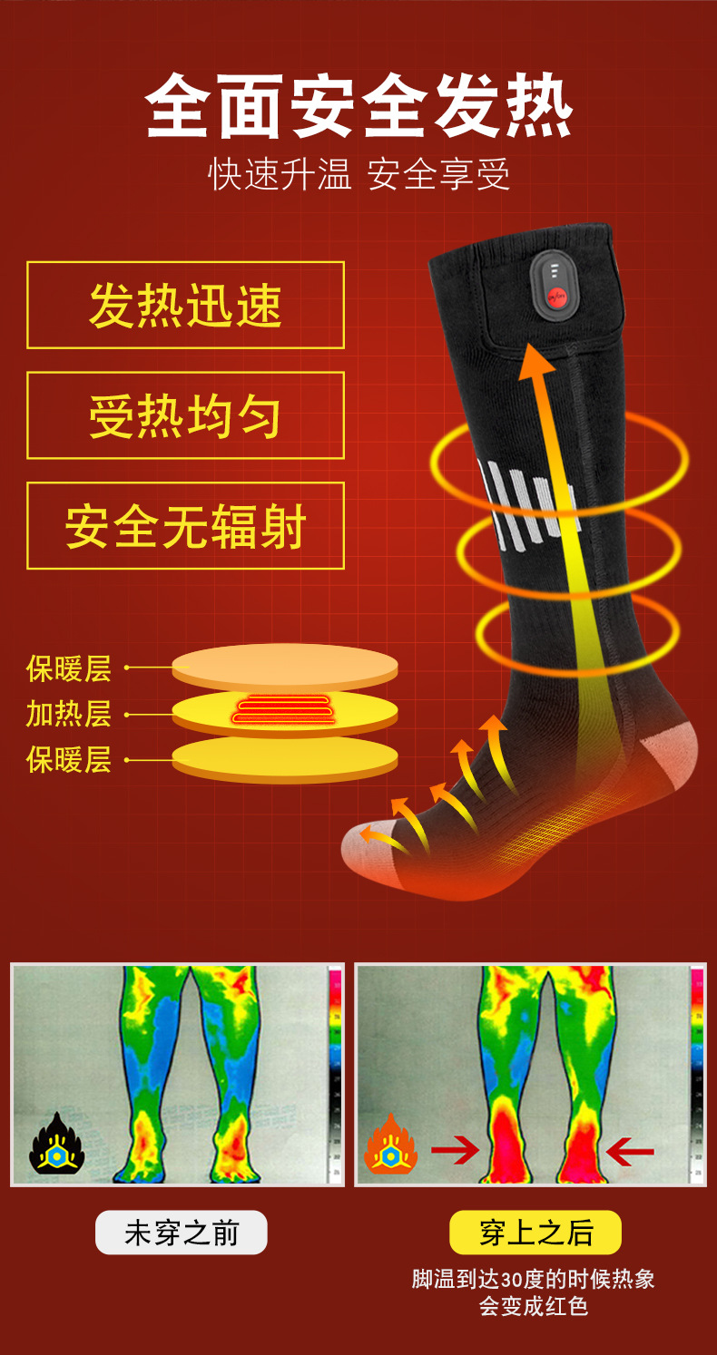 Calcetines térmicos, calcetines cálidos de invierno para hombres y mujeres, calentadores de pies de calentamiento rápido, calcetines con calefacción eléctrica, calentadores de rodilla de tubo largo para exteriores