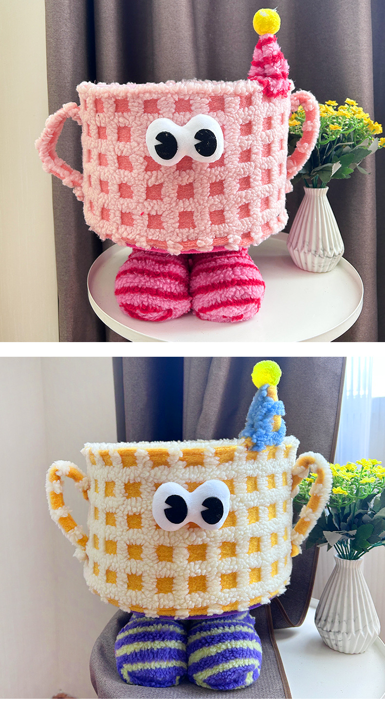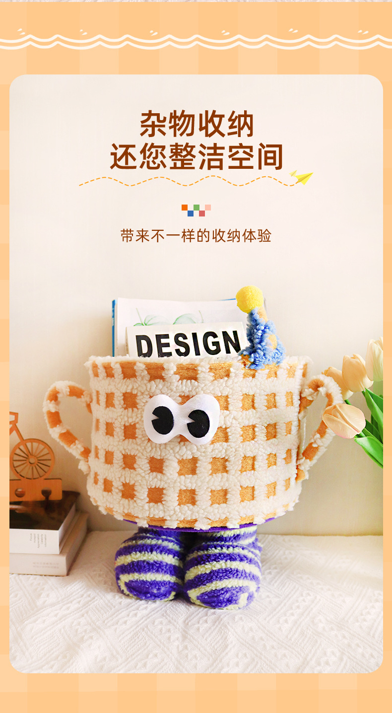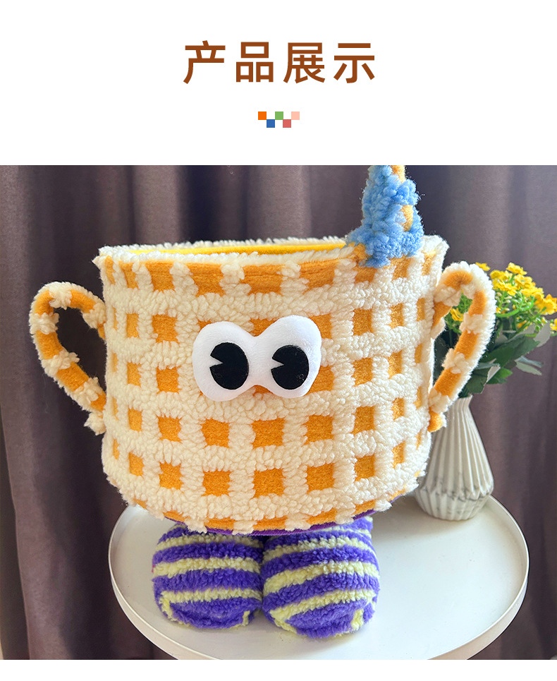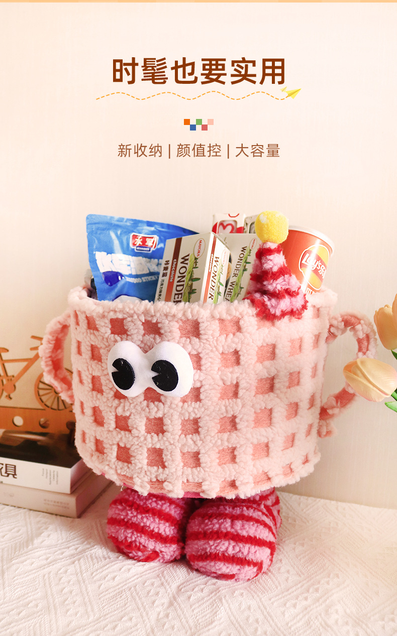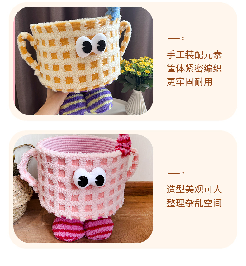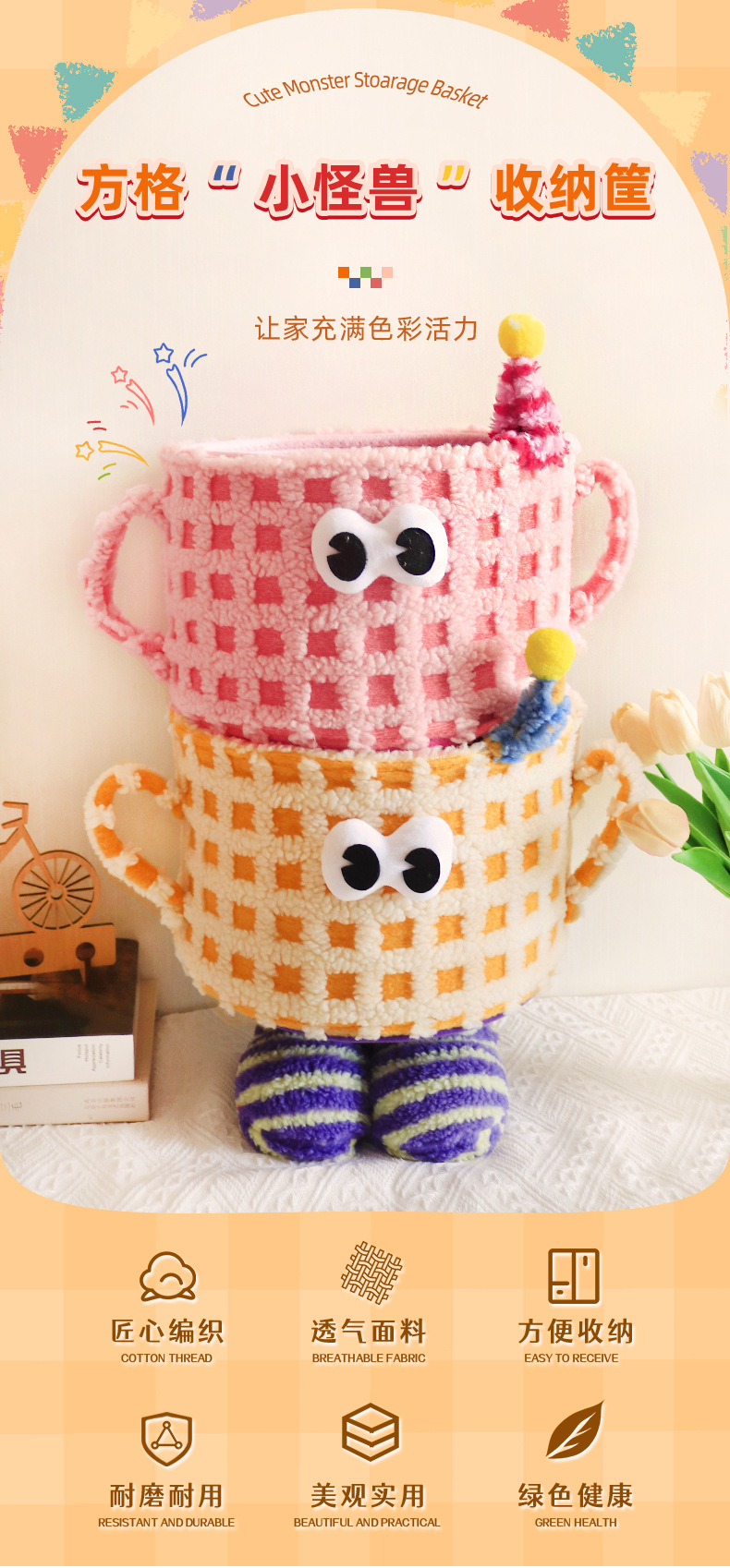 Monstruo de dibujos animados de escritorio merienda canasta de almacenamiento de cuerda de algodón de lana de cordero juguete organizar canasta de almacenamiento regalo decoración del hogar