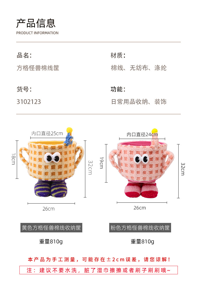 | Colores | Cesta de algodón de monstruo pequeño a cuadros rosa,Cesta de algodón de monstruo pequeño a cuadros amarillos,Cesta de algodón de monstruo pequeño a cuadros morados |
