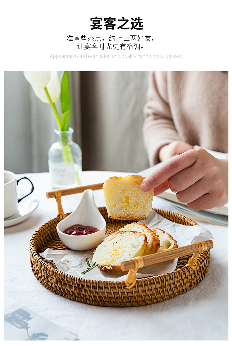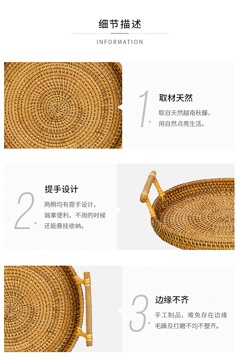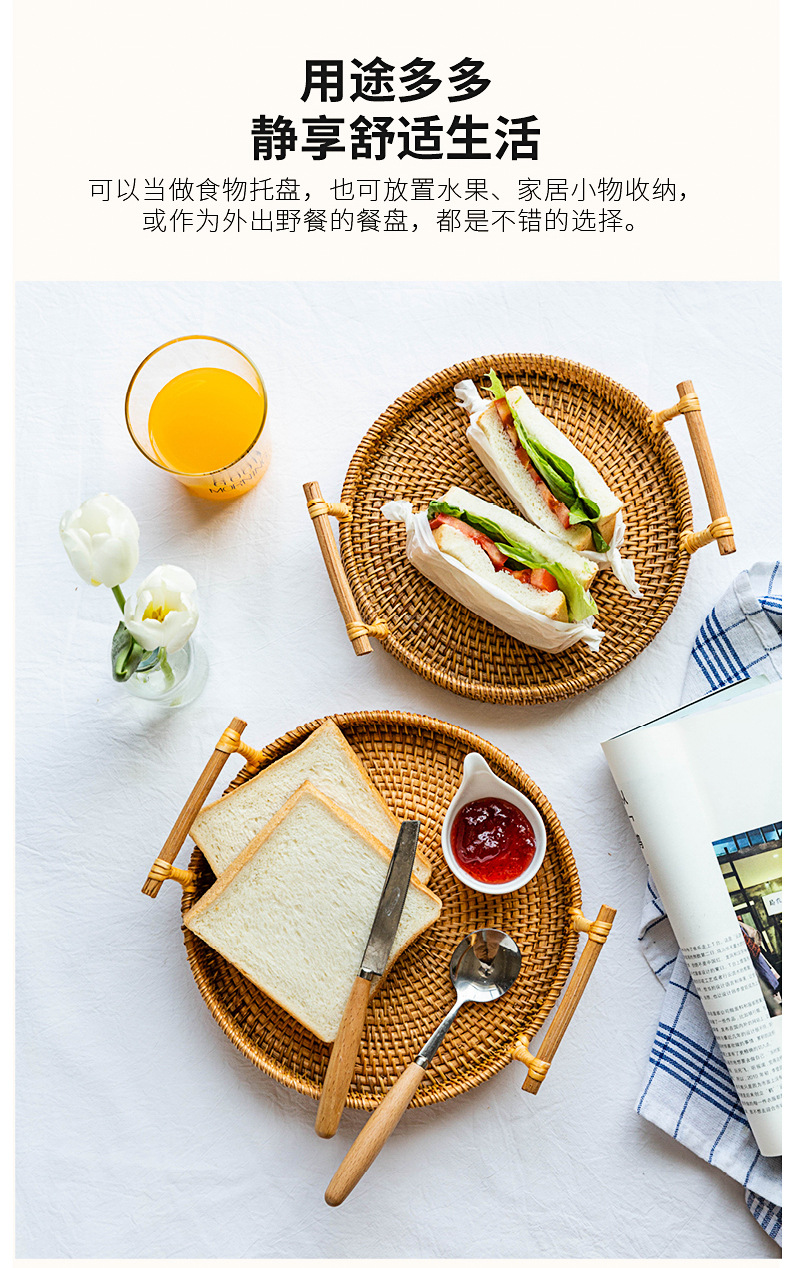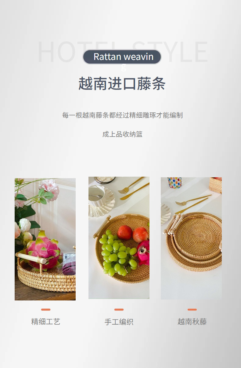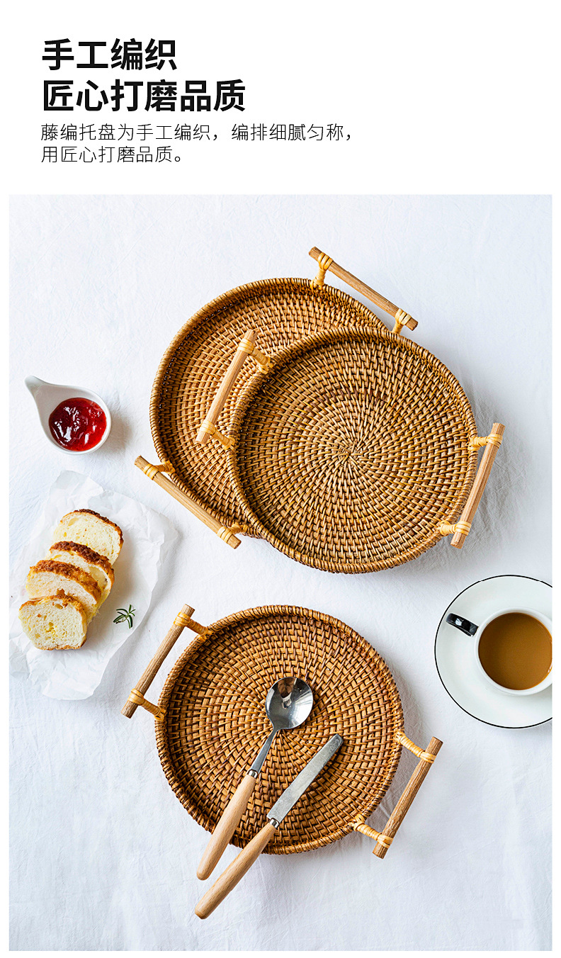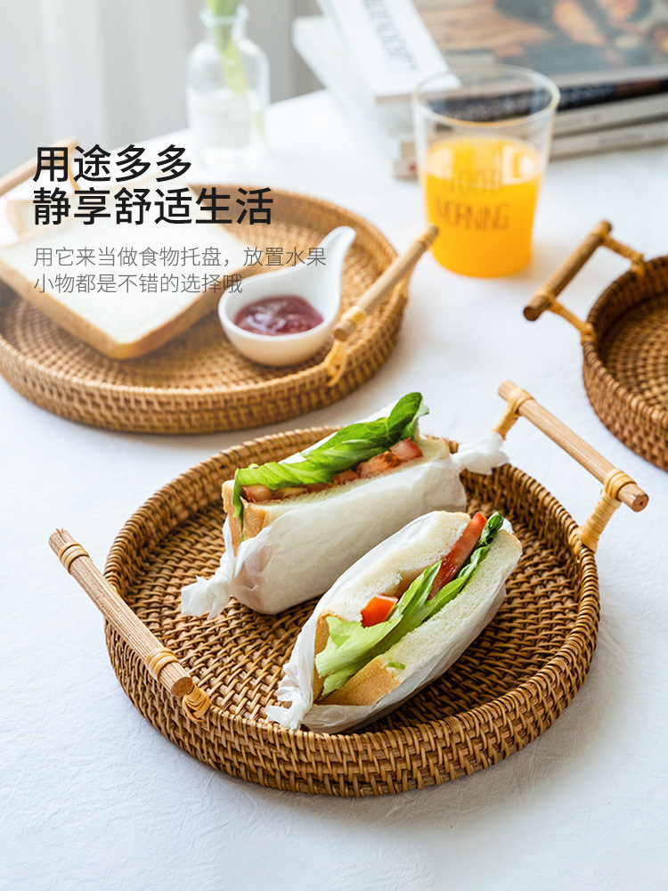 越南秋藤手工编织面包点心餐点托盘三件套