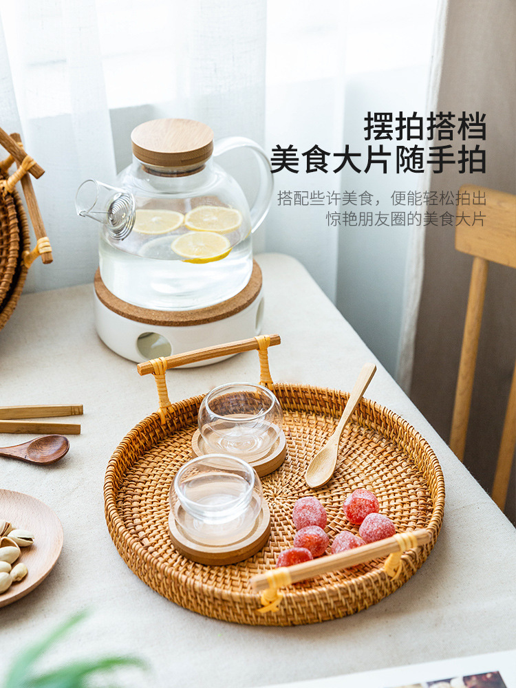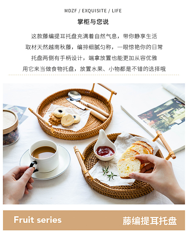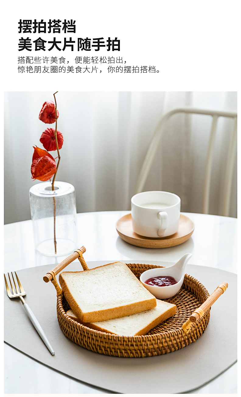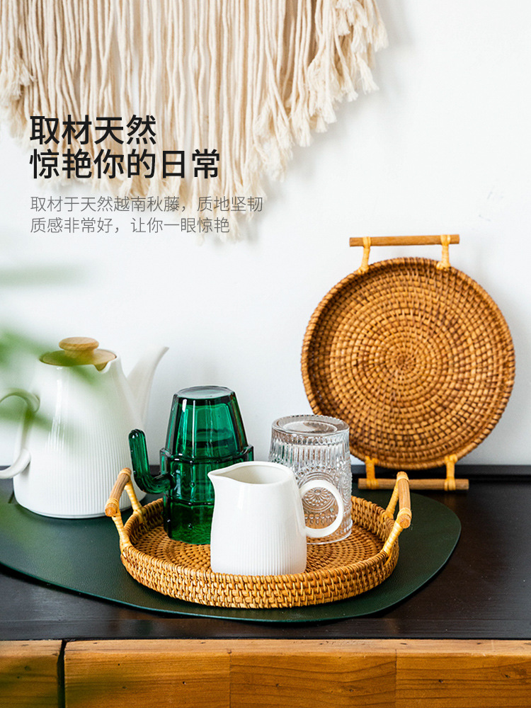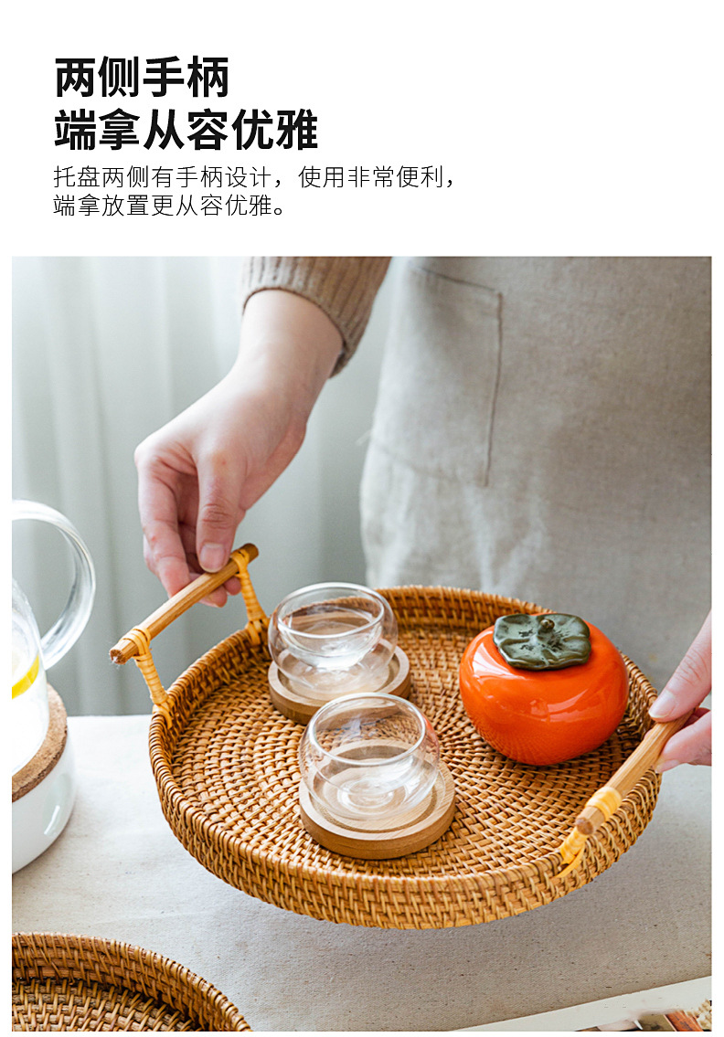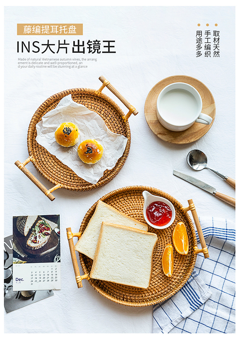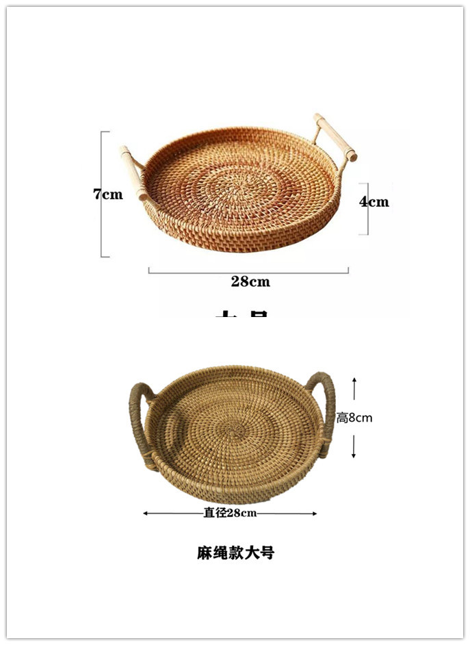 越南秋藤手工编织面包点心餐点托盘三件套