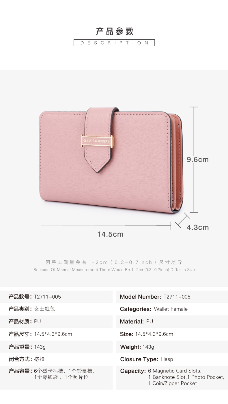 Terian moda nueva gran capacidad de la cremallera del embrague transfronterizo de dos veces la cartera de las mujeres billetera corta