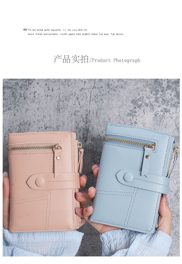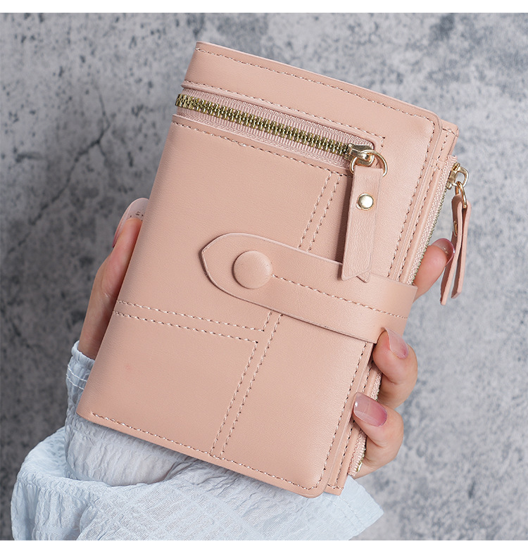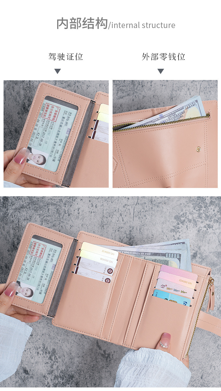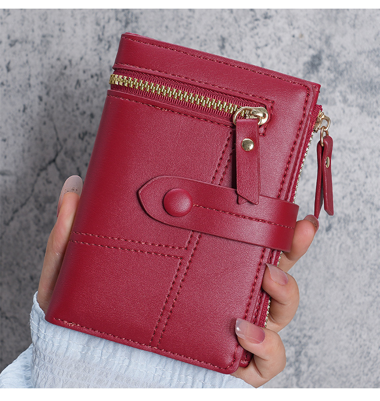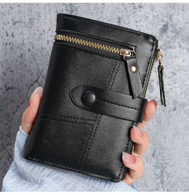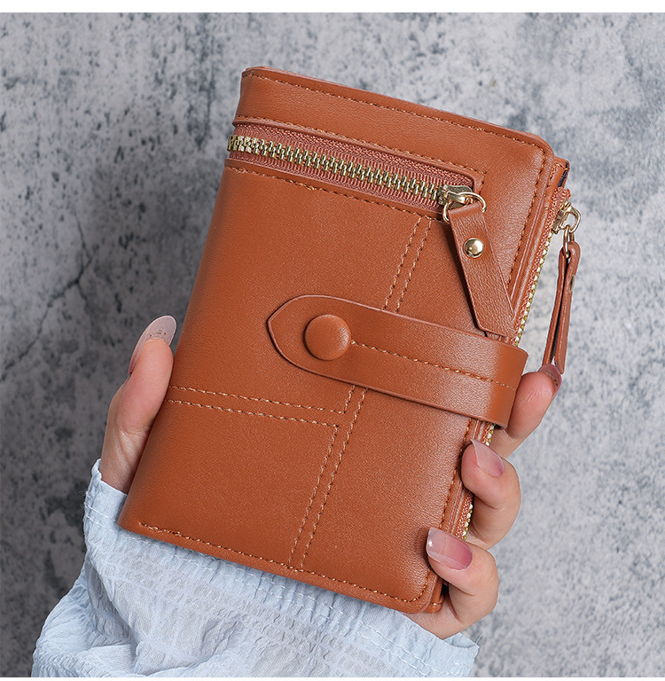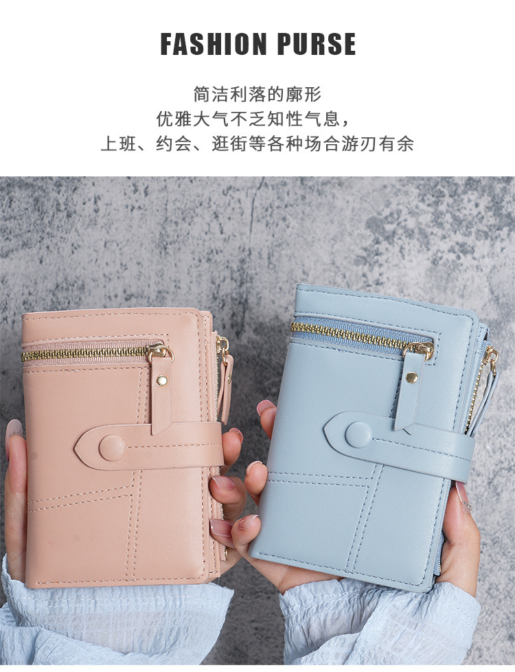 Cartera de Mujer Nueva 2023, Cartera Corta de Cuero PU con Cremallera, Monedero Triple, en Existencia, Versátil, al por Mayor