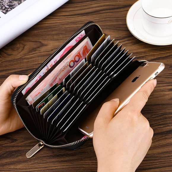 Gran patrón de cuero genuino de las mujeres largas billetera de moda embrague RFID antirrobo cepillo de piel de vaca titular de la tarjeta monedero
