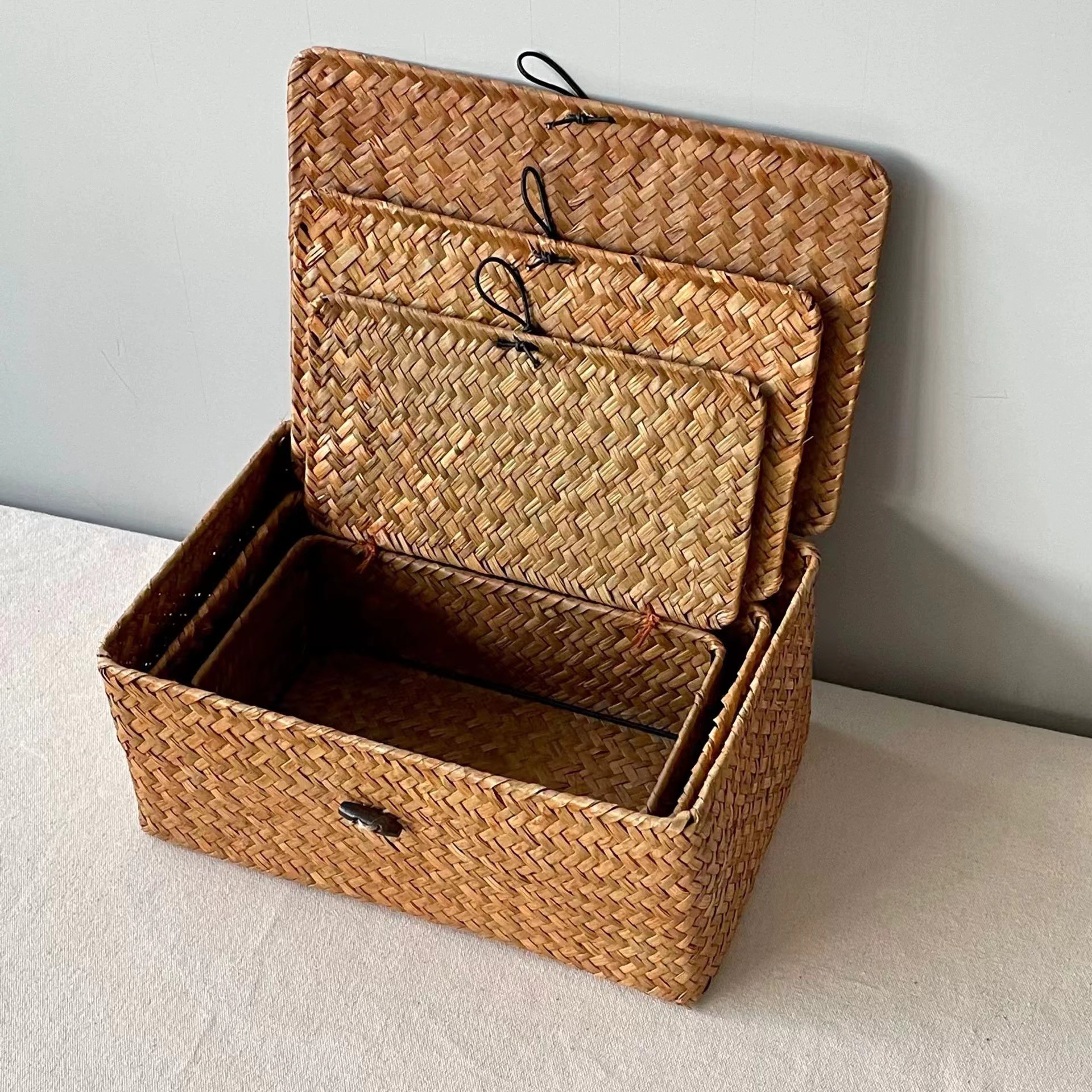Año nuevo Navidad boda rectangular caja de regalo de mano con tapa caja de almacenamiento de escritorio tejida a mano