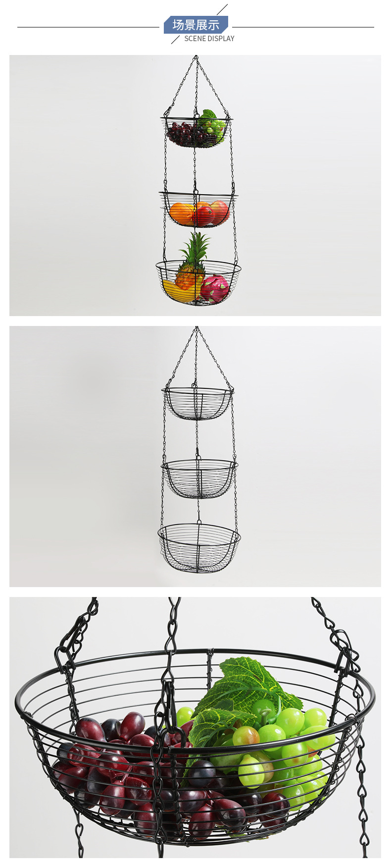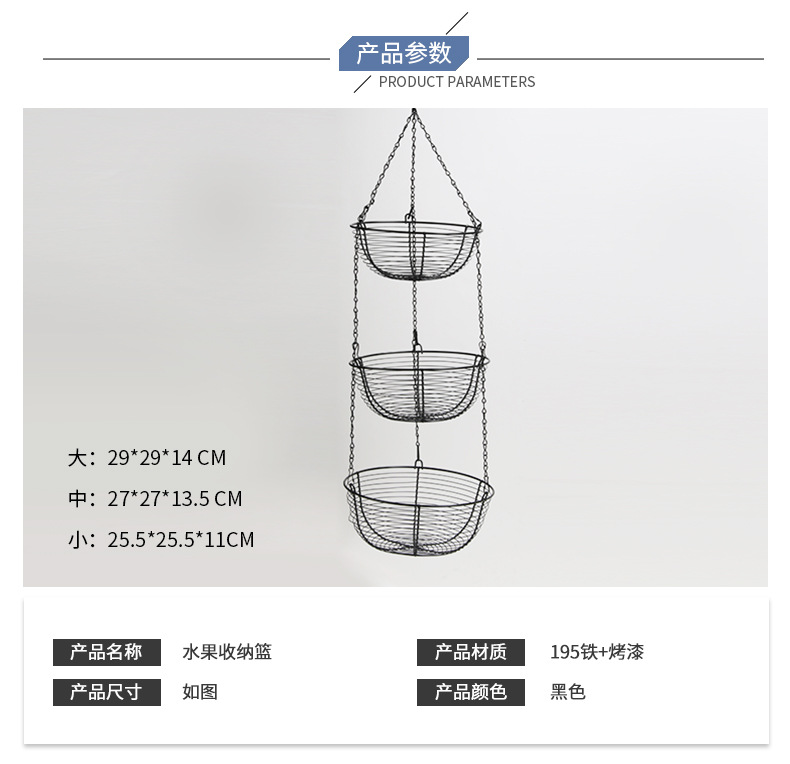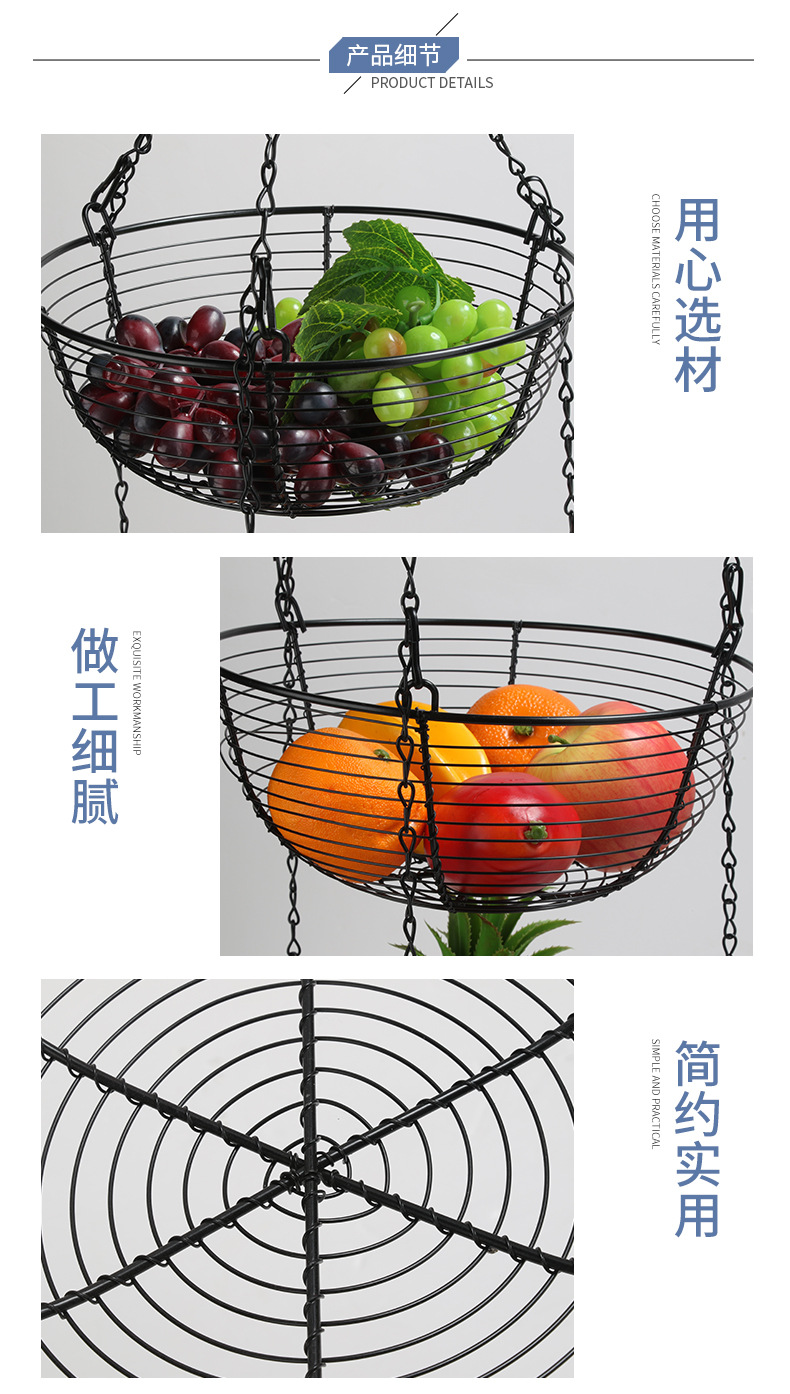 Cesta de fruta de hierro de estilo europeo creativo de tres capas desmontable cuenca de frutas cesta de almacenamiento de frutas cuna de frutas decoración del hogar
