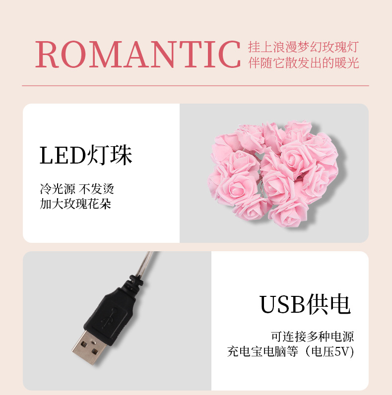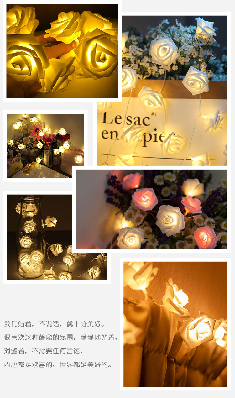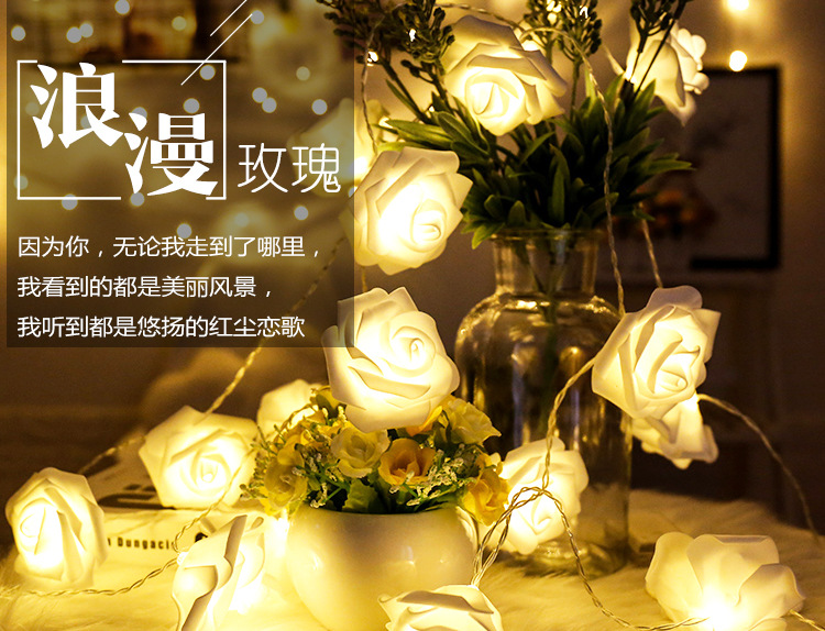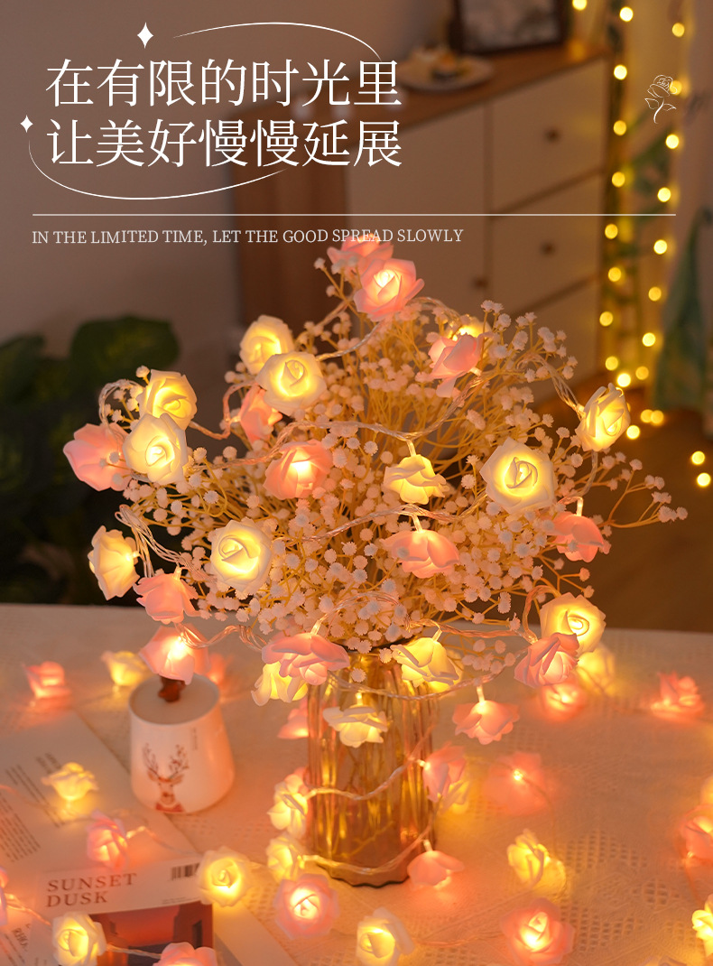LED Rosa pequeña luz intermitente luz de la secuencia de luz dormitorio flor decorativa luz de la batería fiesta sala de bodas confesión romántica Cadena de luz