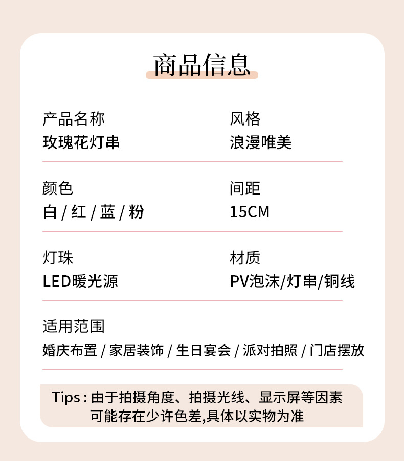 | Color de luz | Rosa blanca,Rosa,Rosa azul,Rosa roja,Blanco + Rosa,Blanco + Azul Rosa,Blanco + rosa roja |