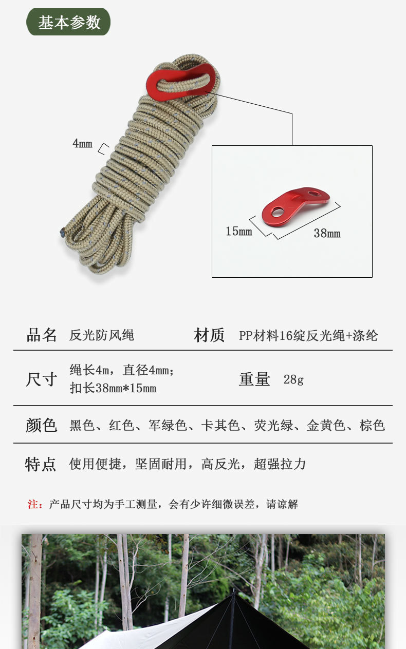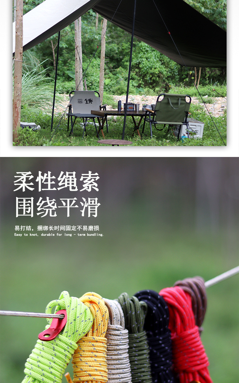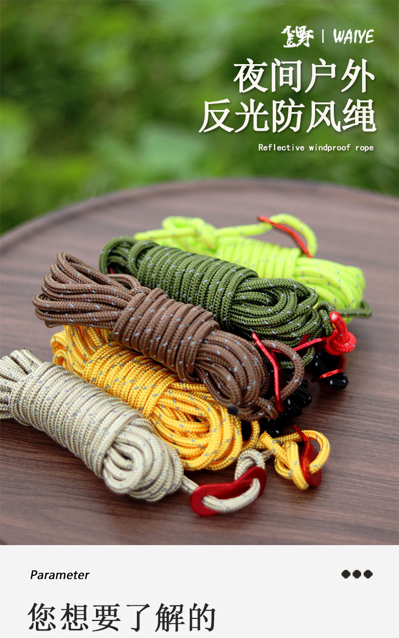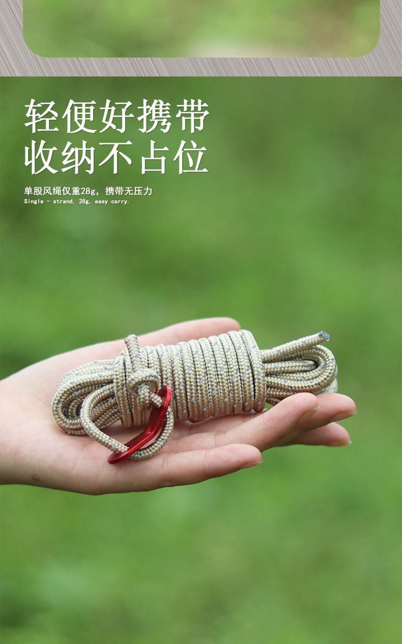Cuerda de viento de 4MM para exteriores, toldo a prueba de viento, varilla de soporte, cordón fijo, tienda de campaña de 4 metros, cuerda reflectante para campamento, cuerda de ajuste para acampar