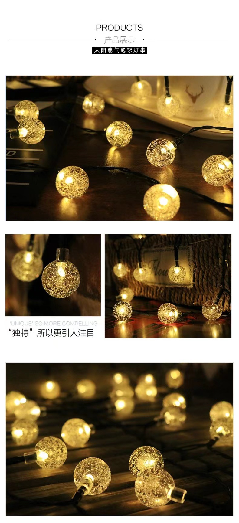 Transfronterizo en stock LED solar burbuja bola Cadena de luz al aire libre camping escena diseño impermeable Cadena de luz de color al por mayor
